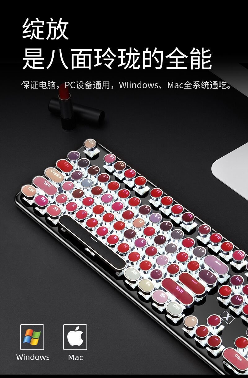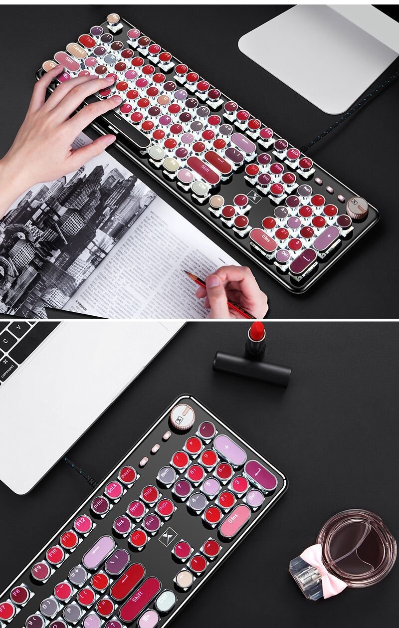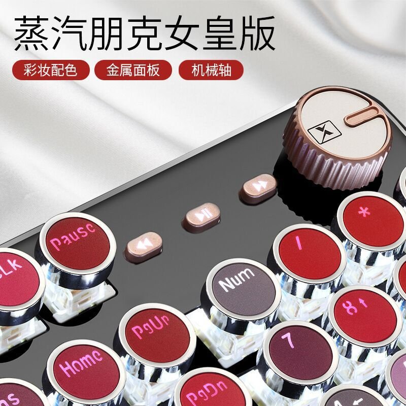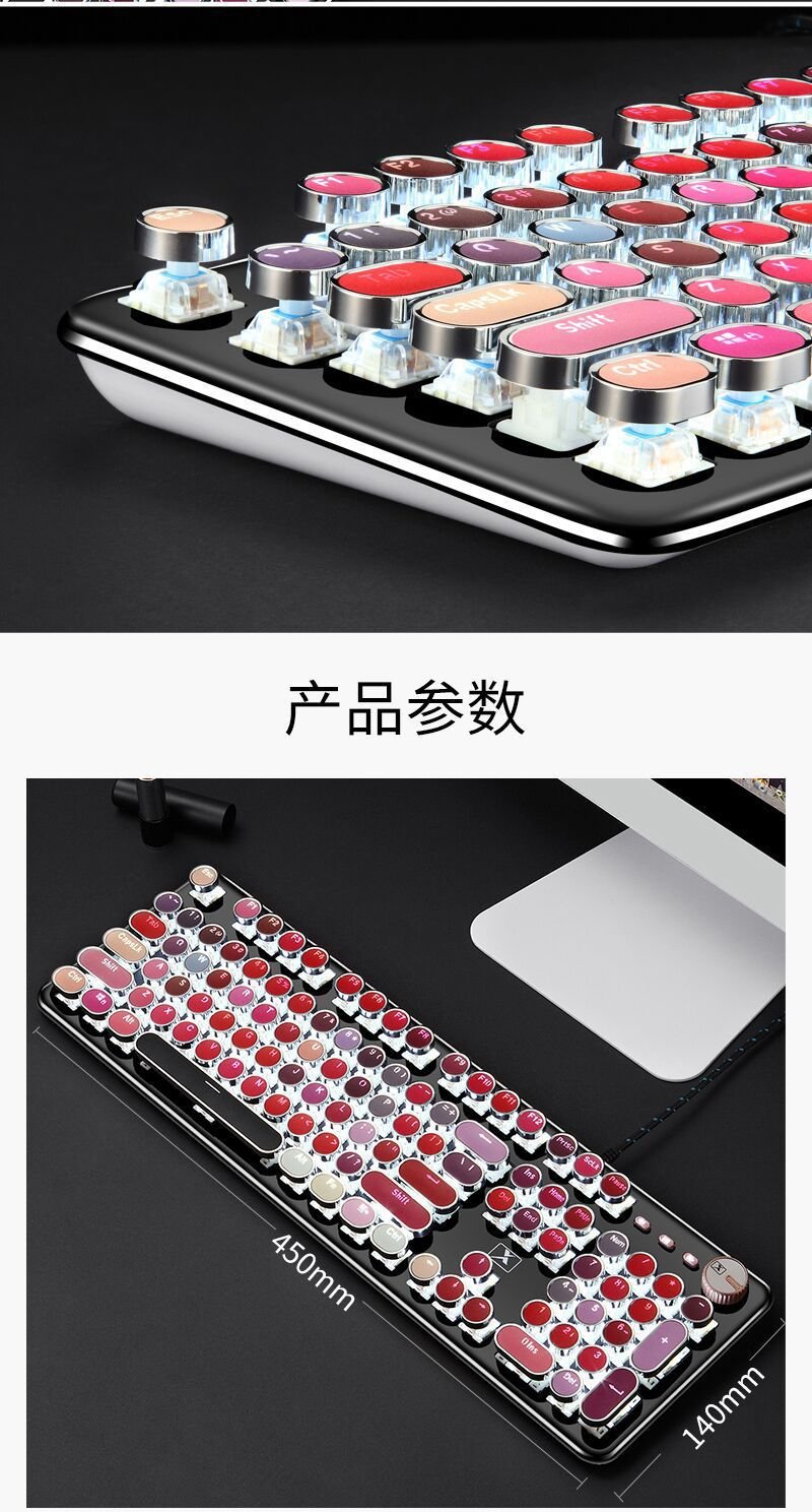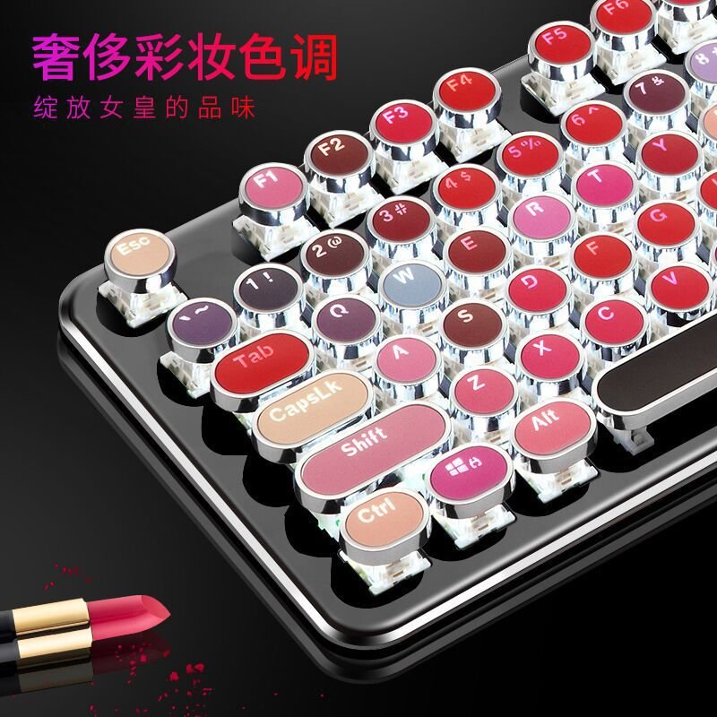 New League T520 Lipstick Real Mechanical Keyboard Mouse Set Retro Girl Pink Cute Green Axis Round Key Gaming Keyboard