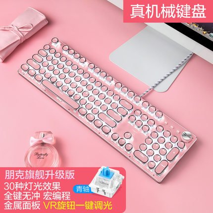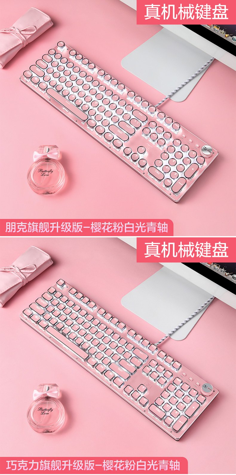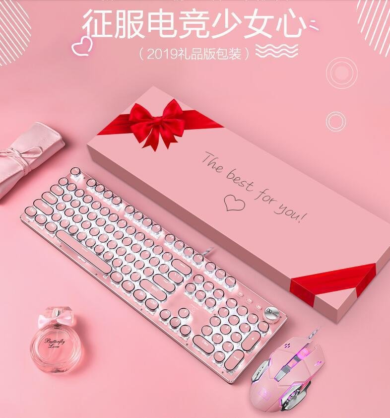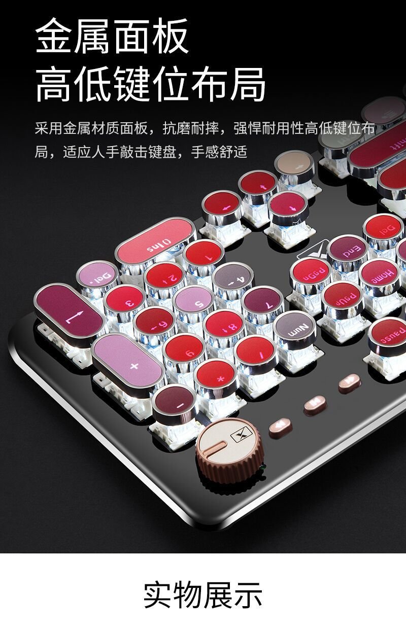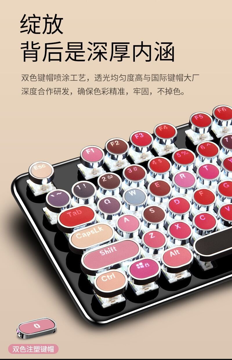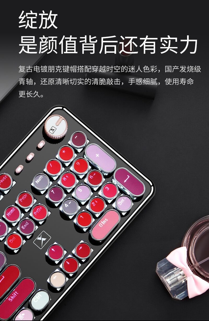 New League T520 Lipstick Real Mechanical Keyboard Mouse Set Retro Girl Pink Cute Green Axis Round Key Gaming Keyboard