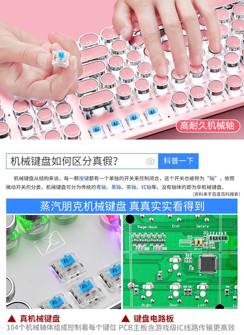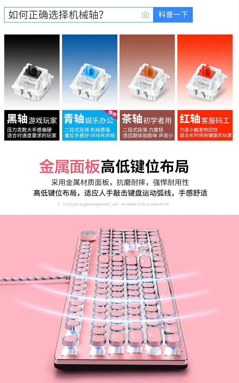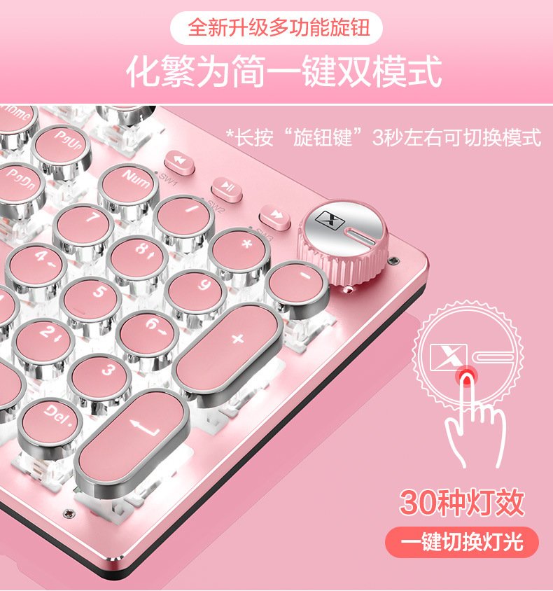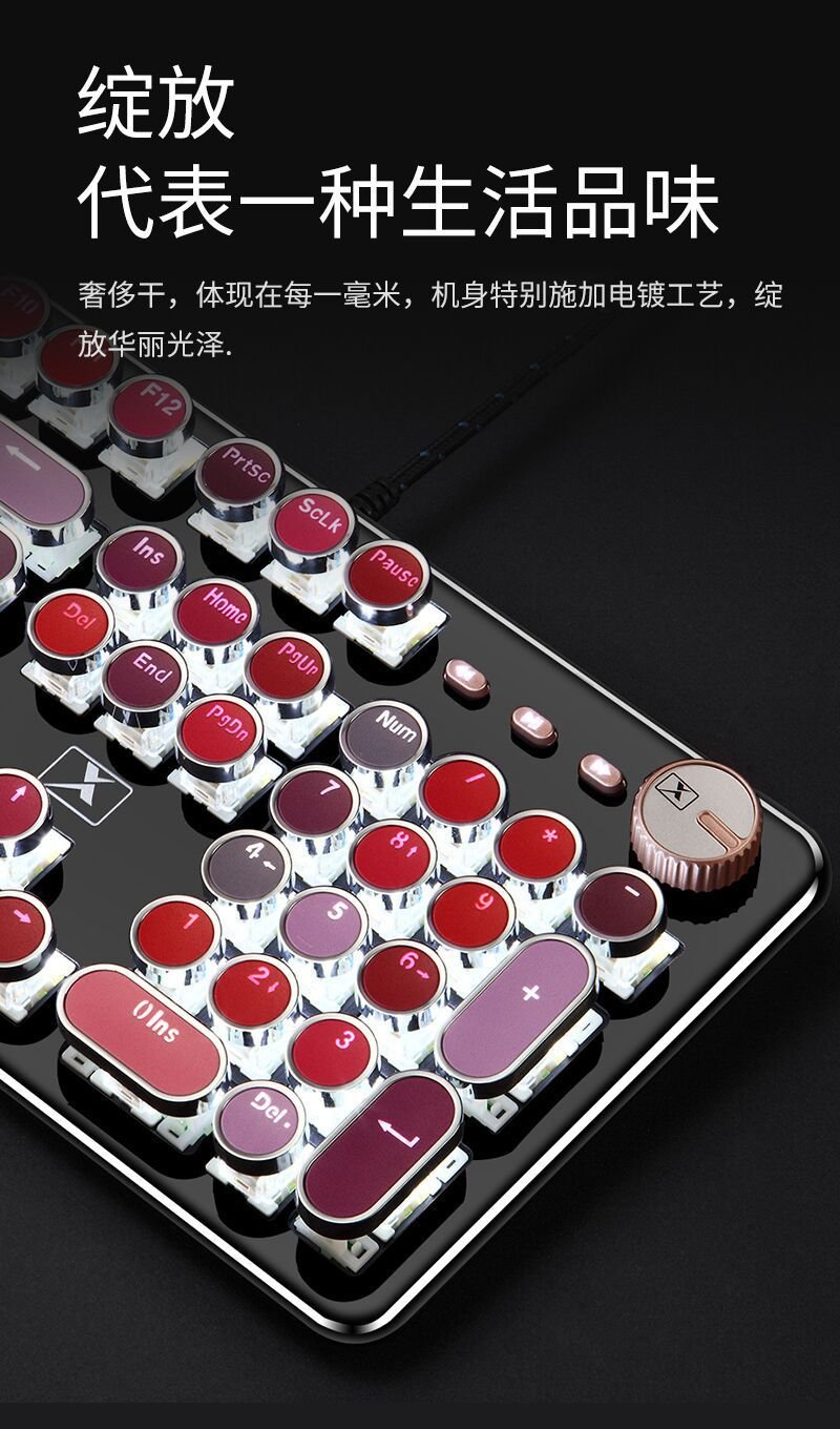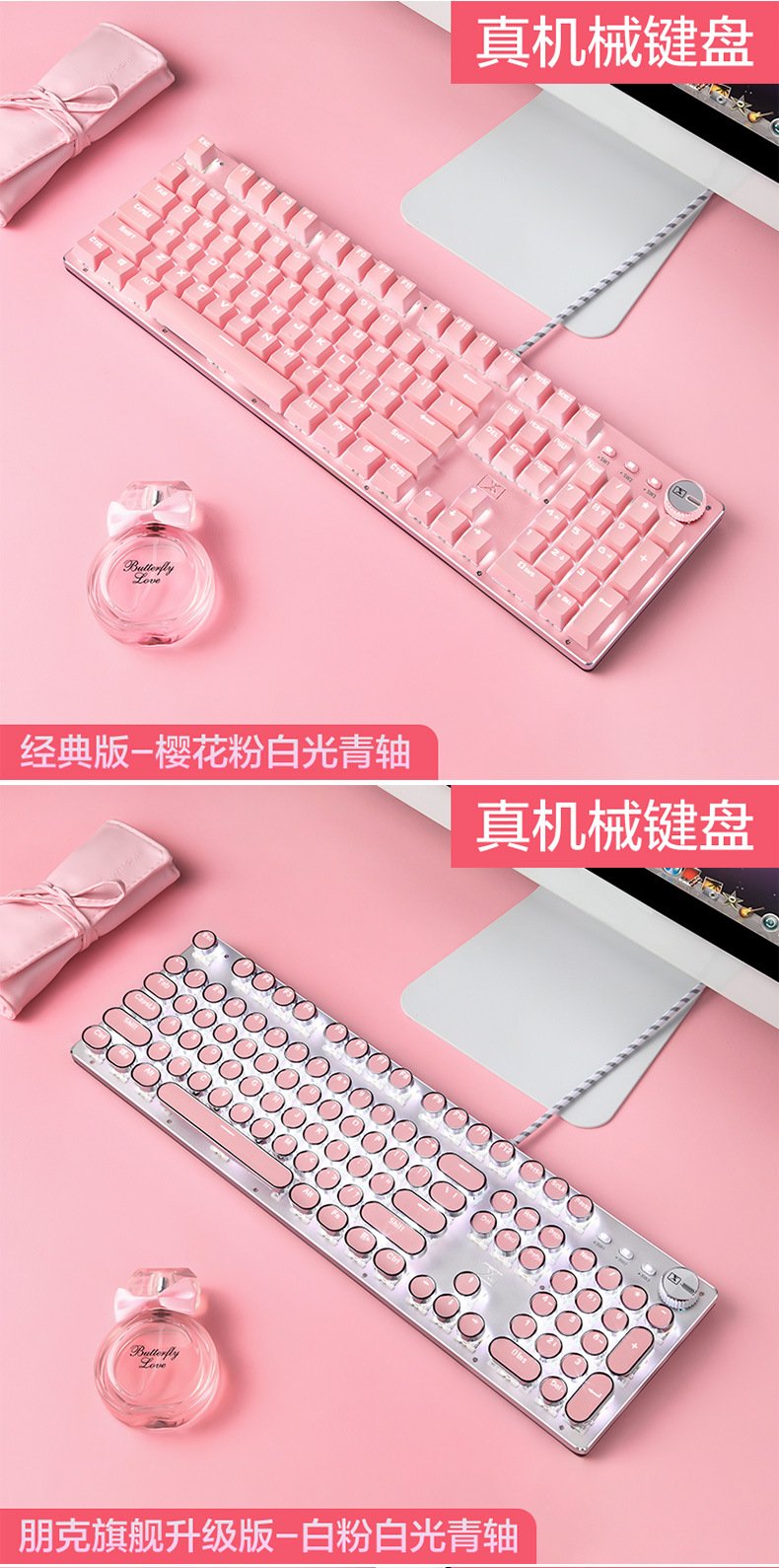 New League T520 Lipstick Real Mechanical Keyboard Mouse Set Retro Girl Pink Cute Green Axis Round Key Gaming Keyboard