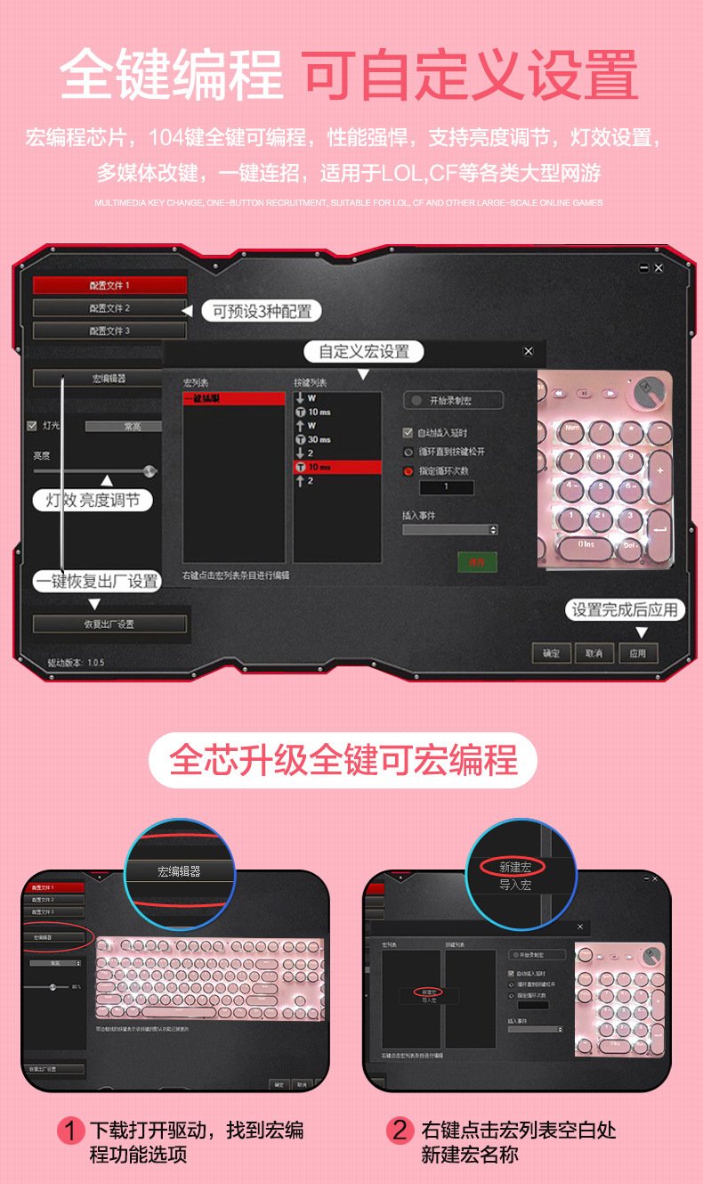 [gift Packaging] Pink Punk Round Keycap Version + Macro Mouse