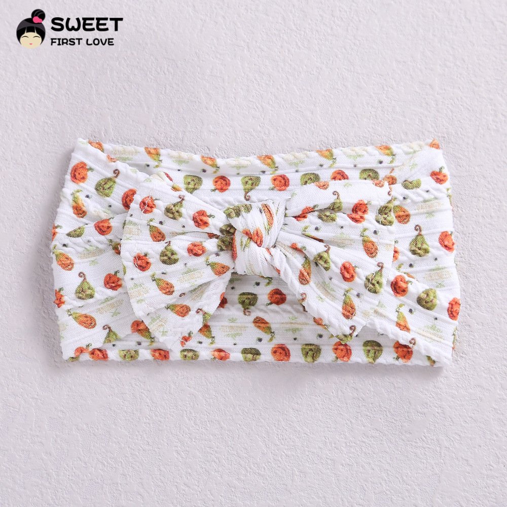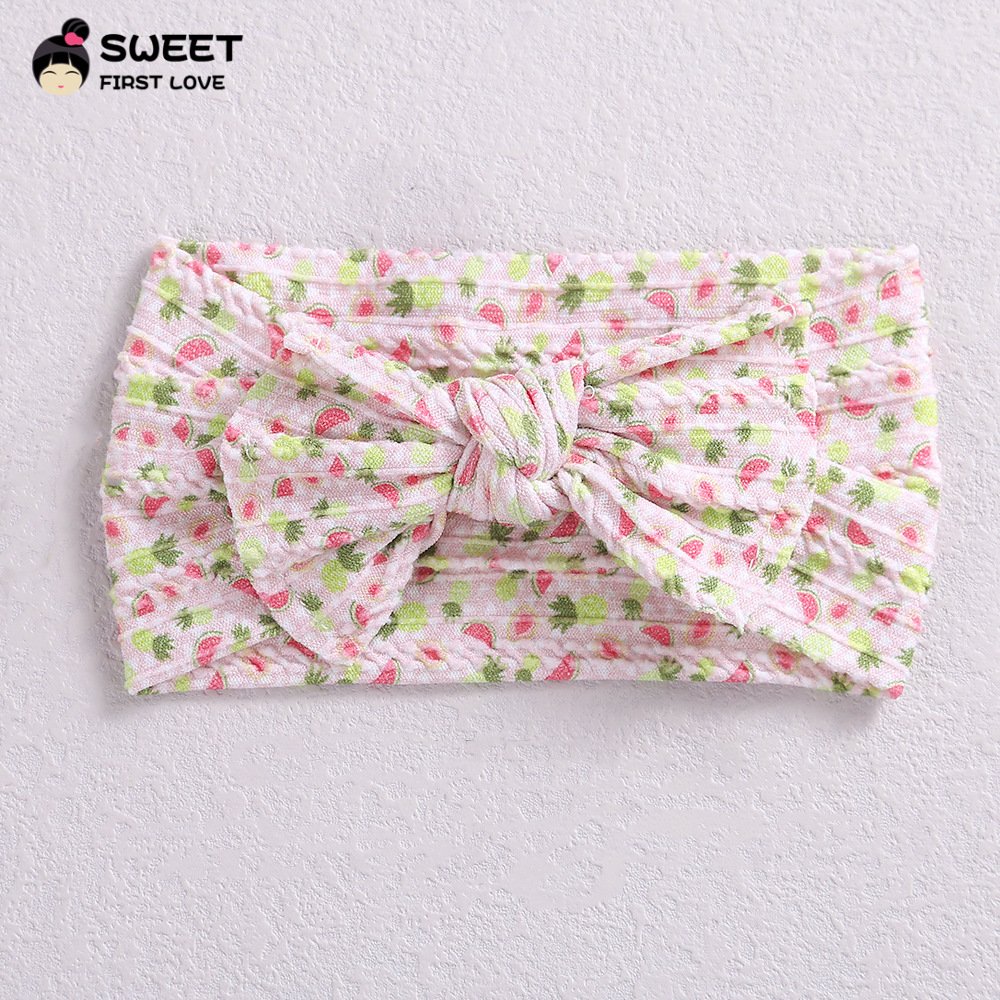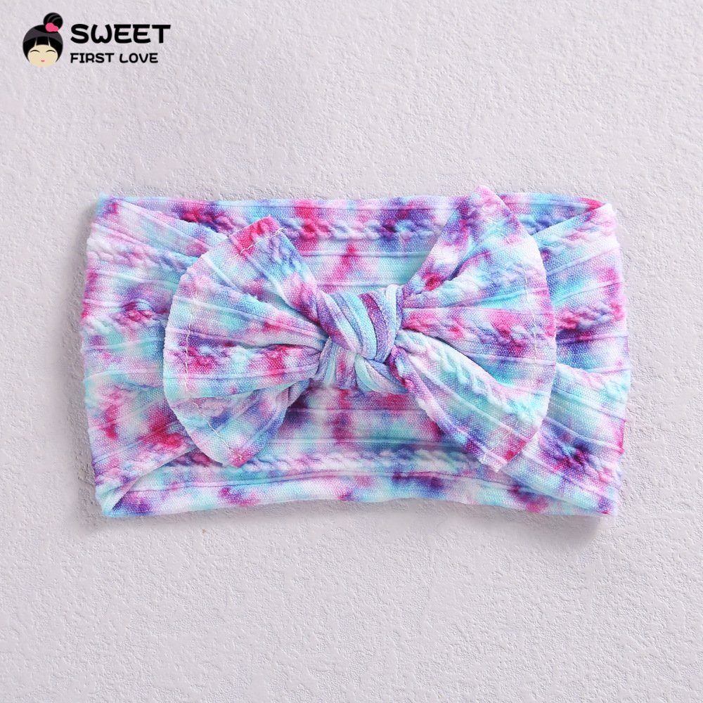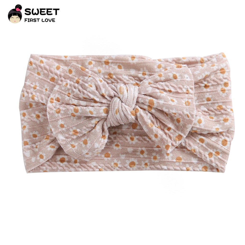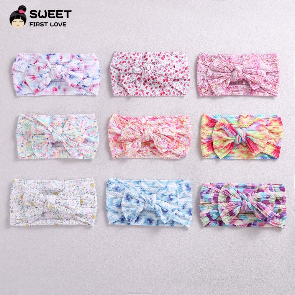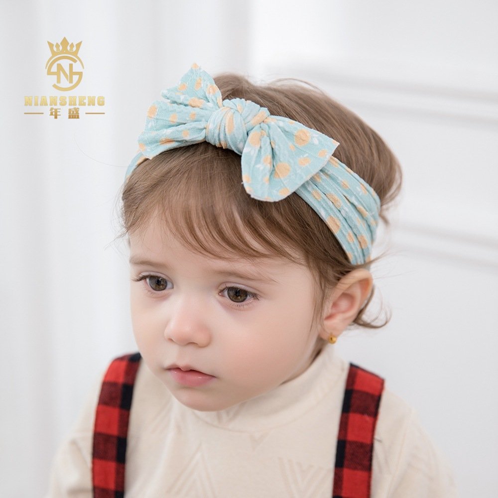 Niansheng jewelry new children’s hair accessories European and American wide-brimmed elastic nylon embossed bow baby print headband