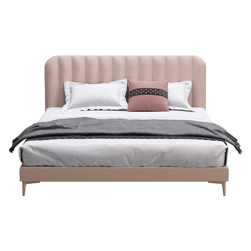Nordic light luxury flannel bed fabric pink soft foreskin bed Italian minimalist master bed 1.8m double bed