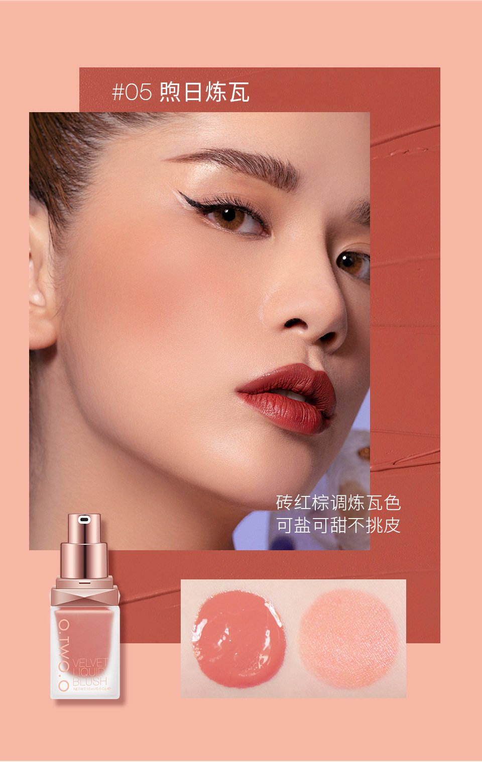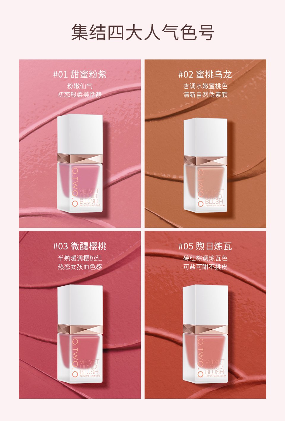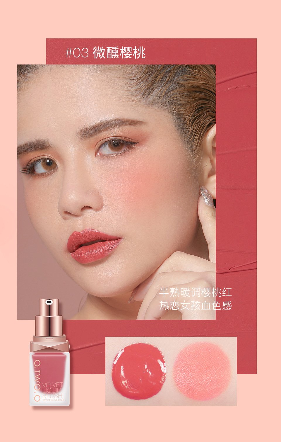 O.TWO.O natural dazzling color liquid blush long-lasting matte silky delicate rouge beauty makeup SC023