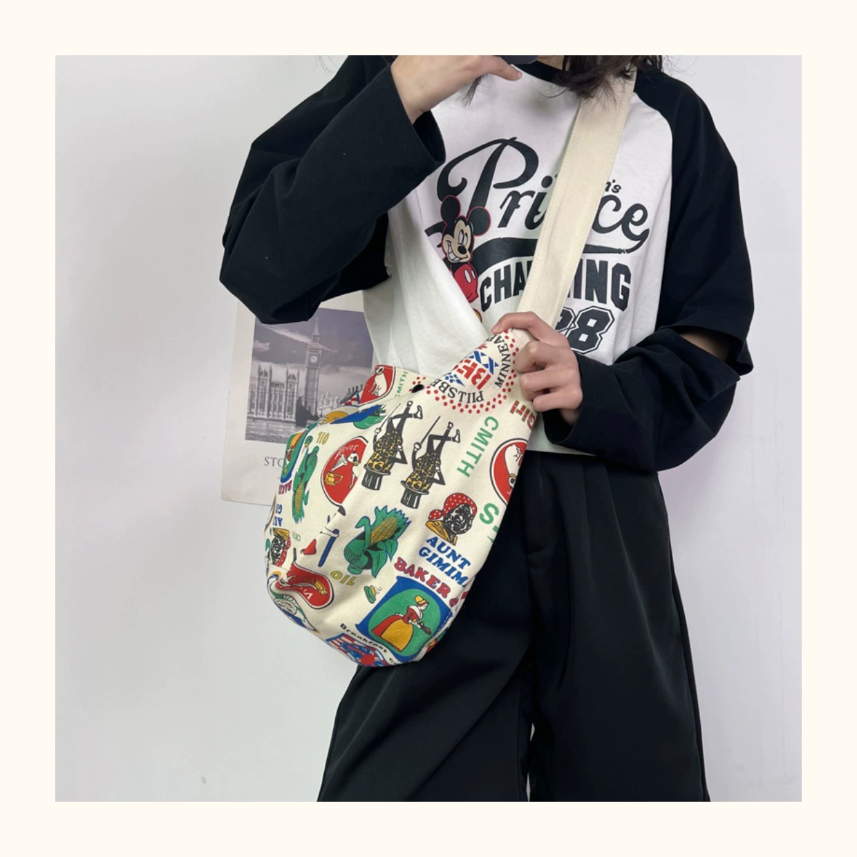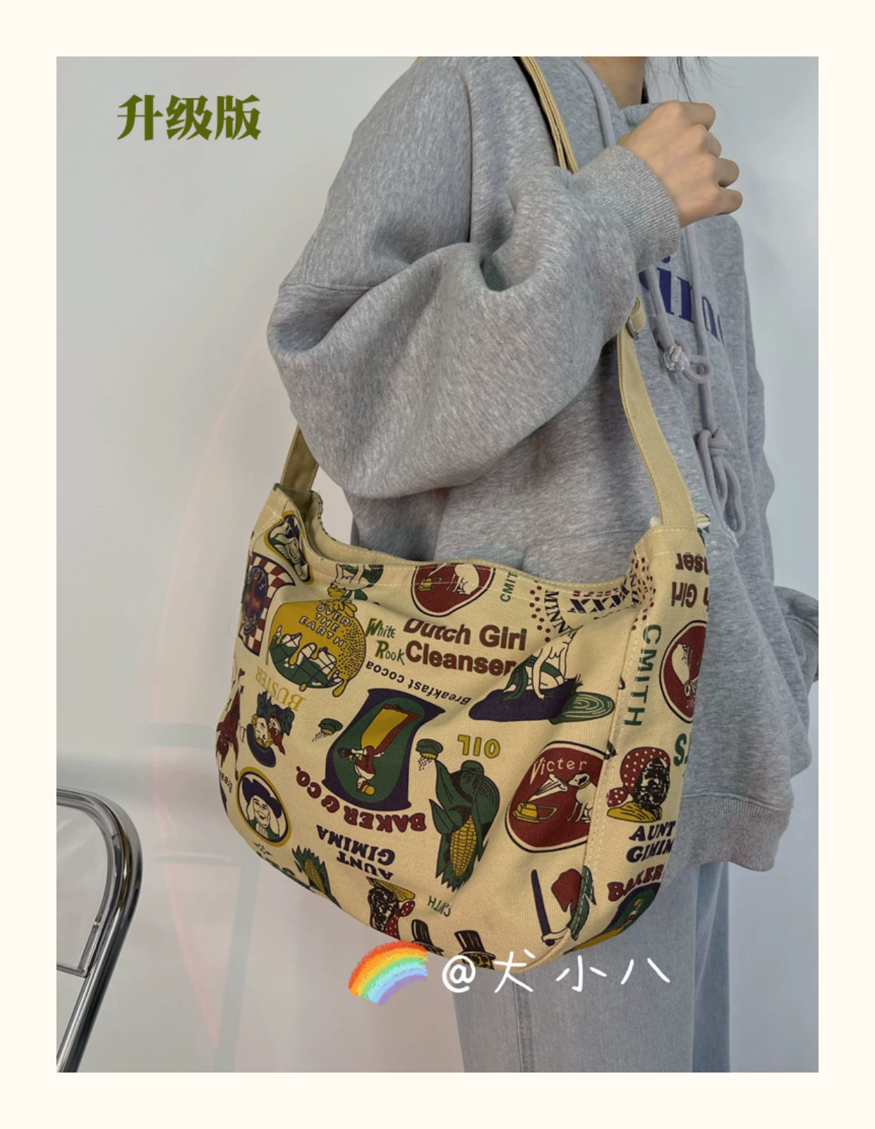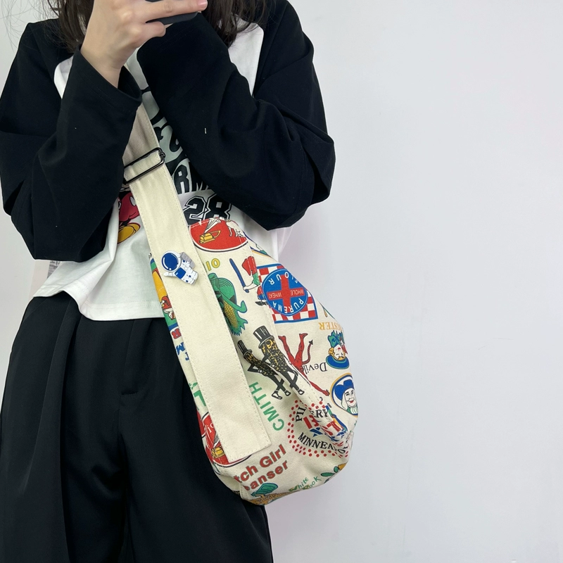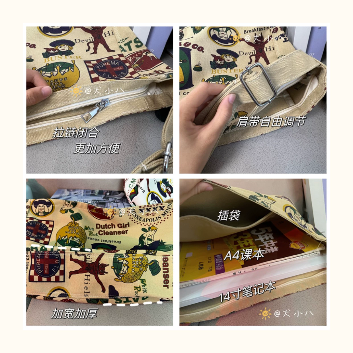 One-shoulder canvas bag women’s large-capacity ins Korean style Japanese literature and art summer minority college students commuting Messenger bag