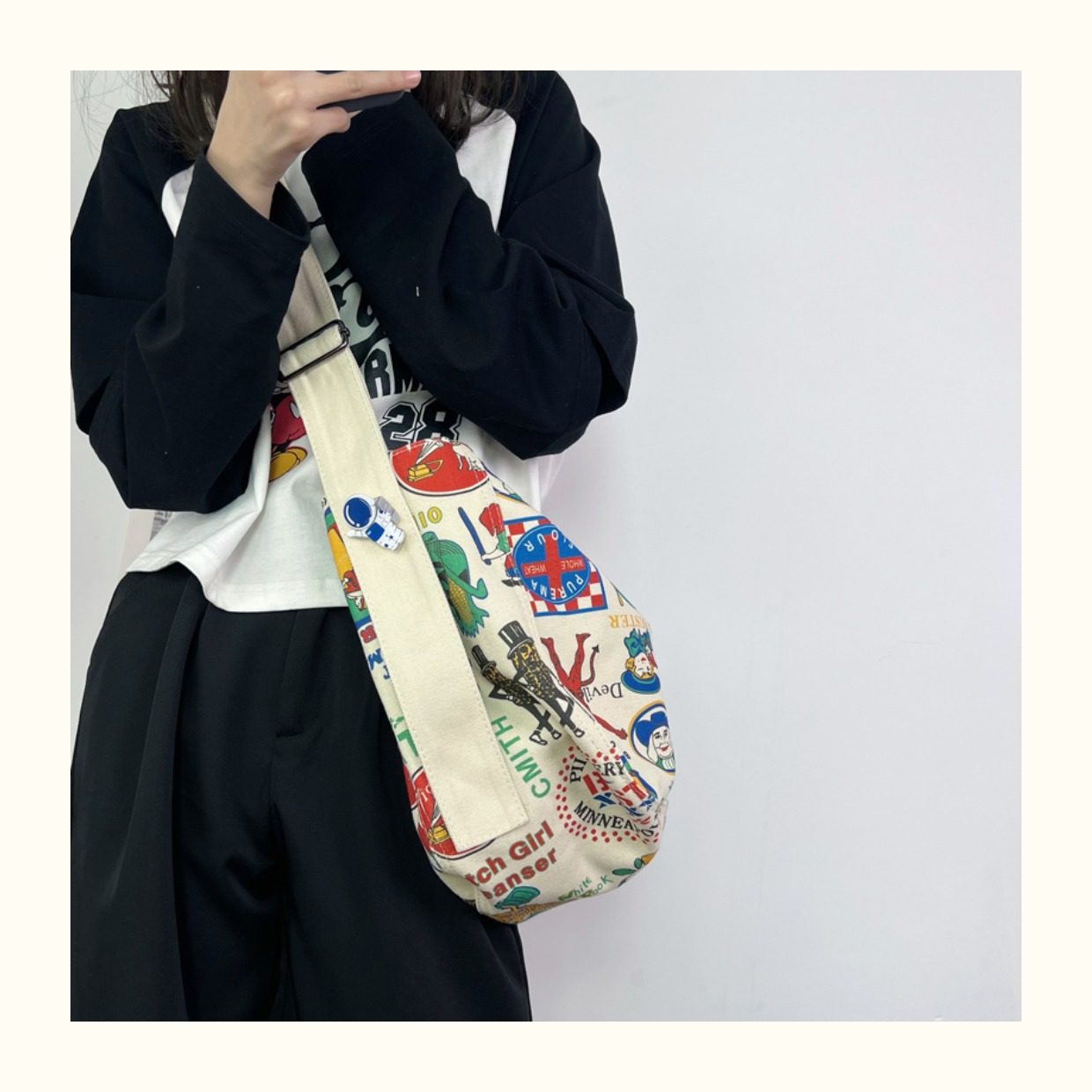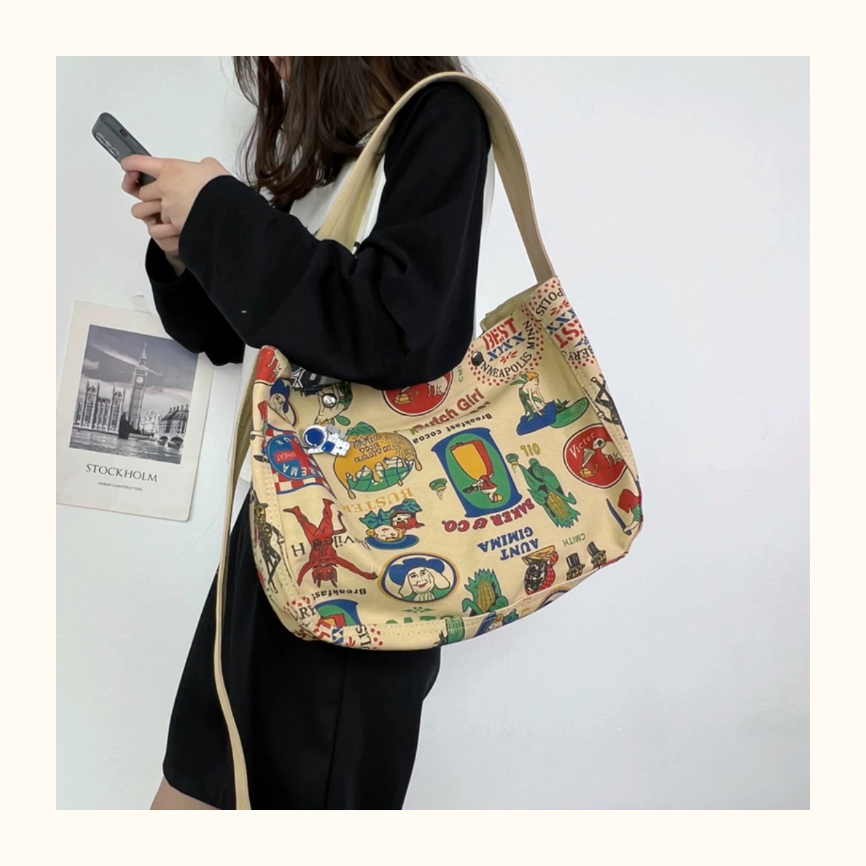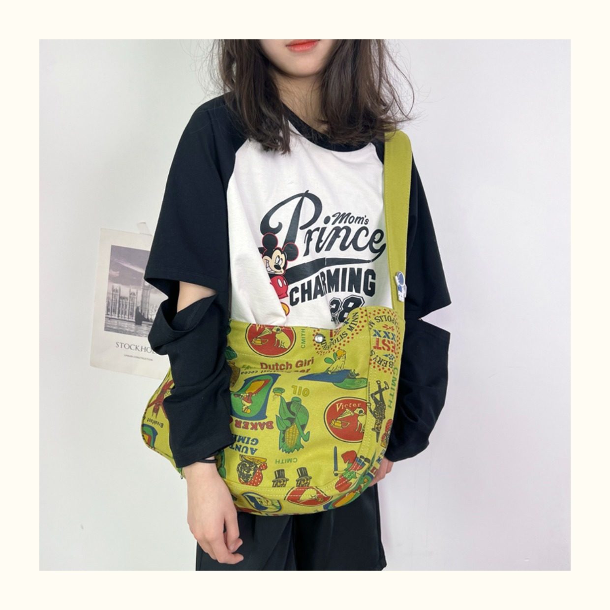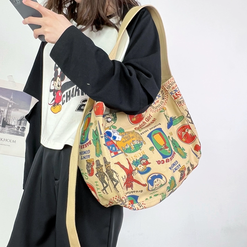 One-shoulder canvas bag women’s large-capacity ins Korean style Japanese literature and art summer minority college students commuting Messenger bag