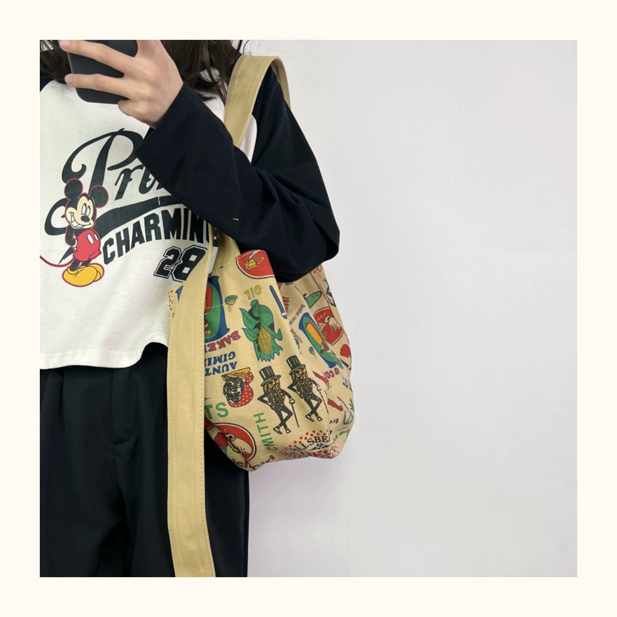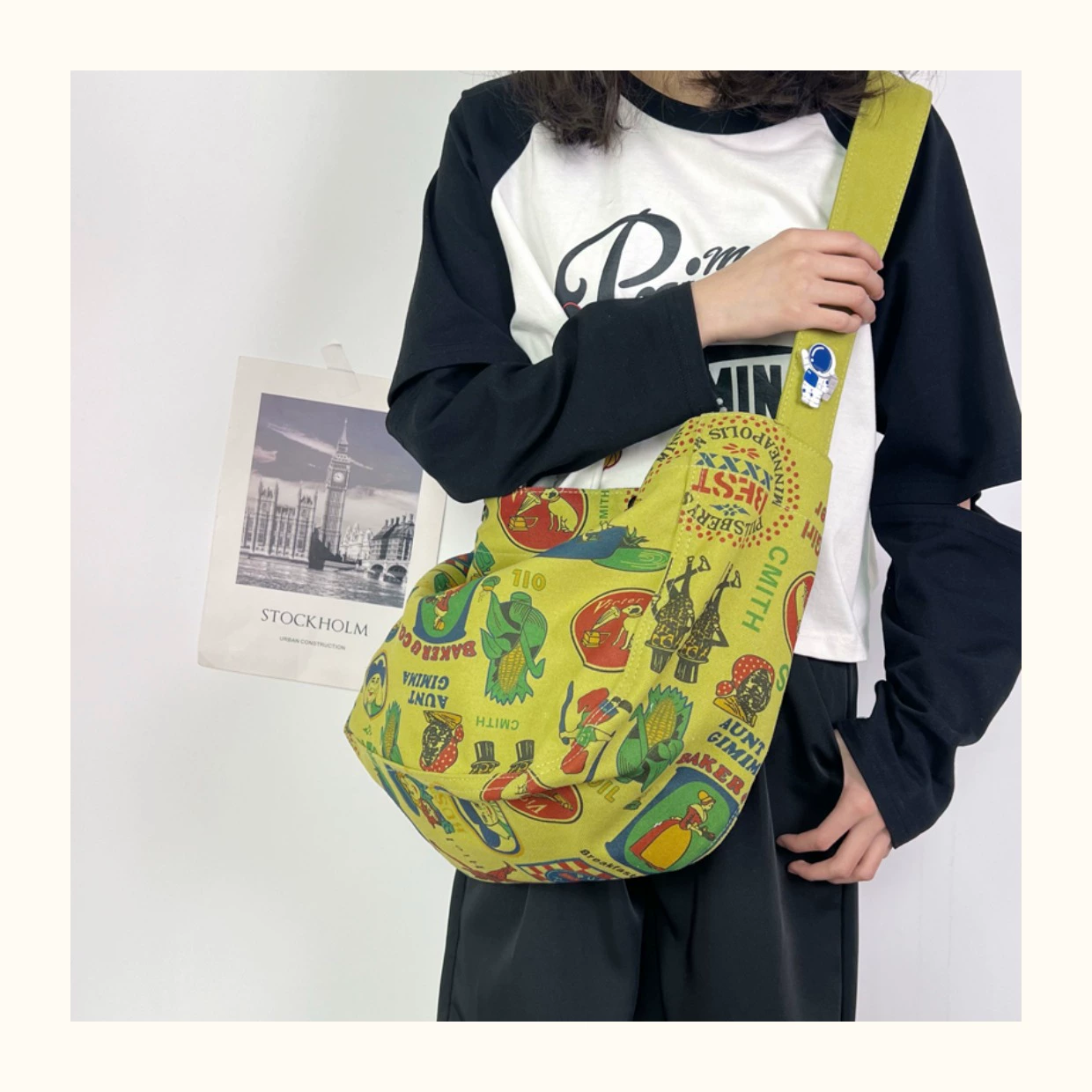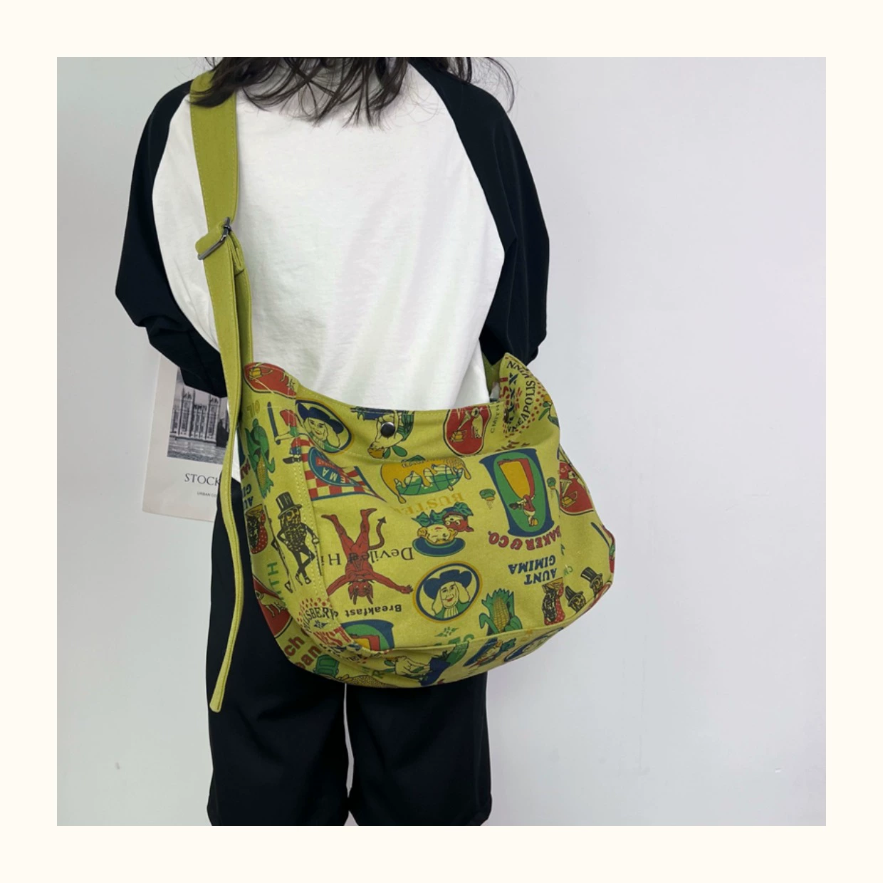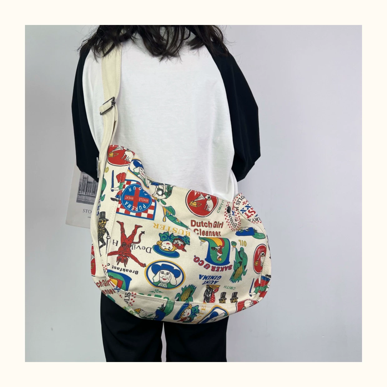 One-shoulder canvas bag women’s large-capacity ins Korean style Japanese literature and art summer minority college students commuting Messenger bag