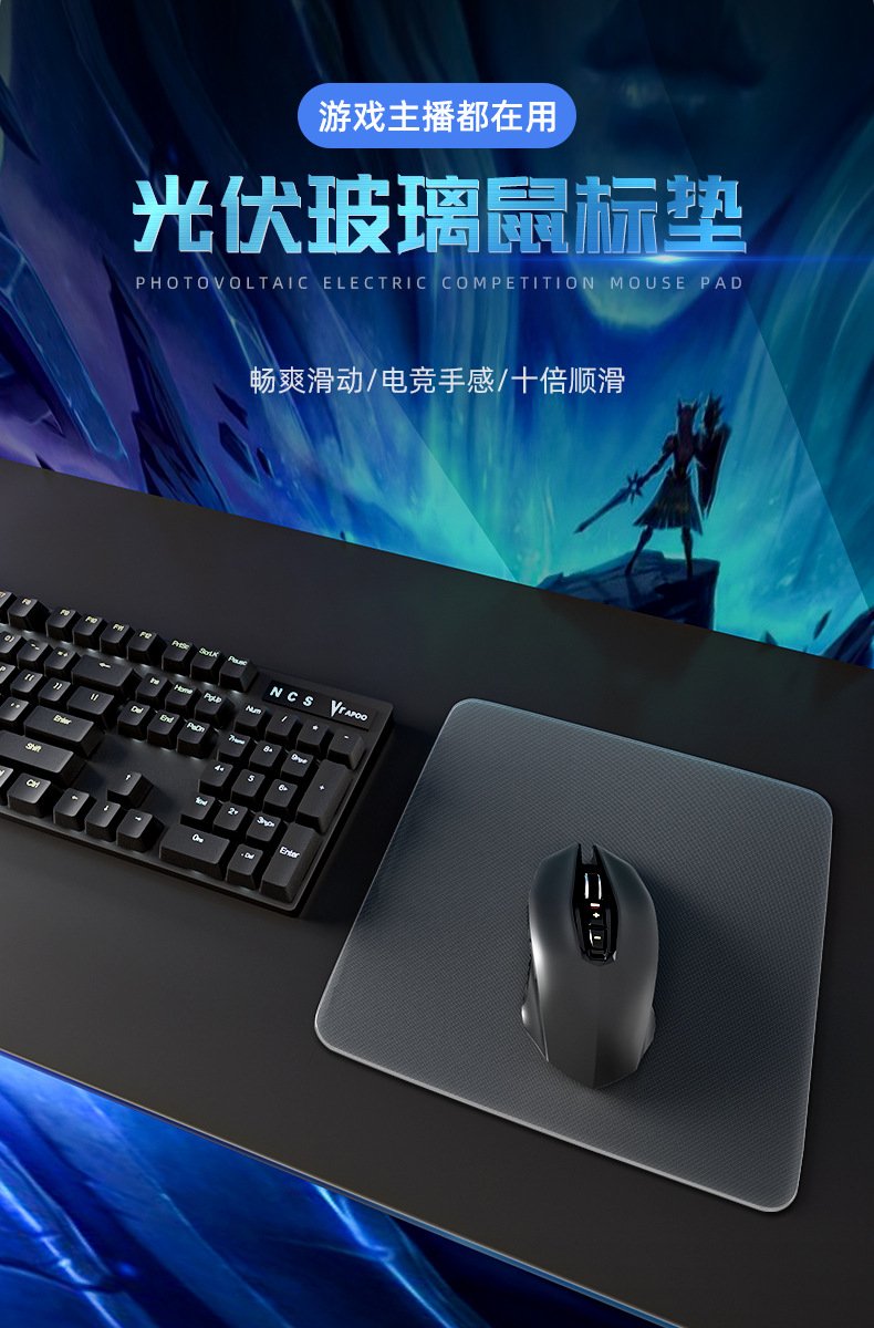 Photovoltaic glass mouse pad silky feel, no sweat, easy to clean, toughened four-sided fine grinding model with pattern