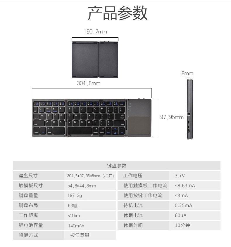 Be the first to review “Portable three-folding wireless bluetooth keyboard mobile phone tablet bluetooth keyboard and mouse all in one with trackpad”