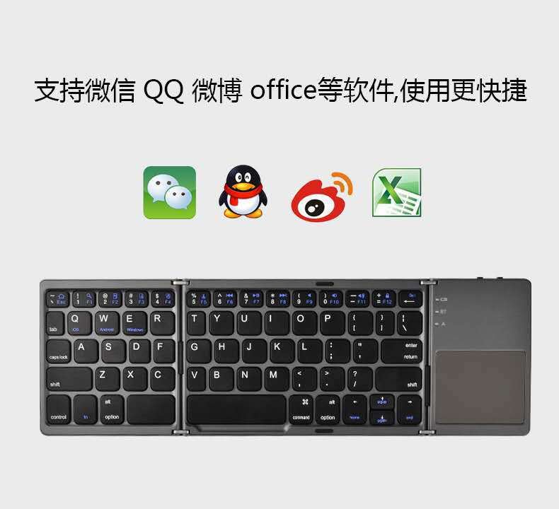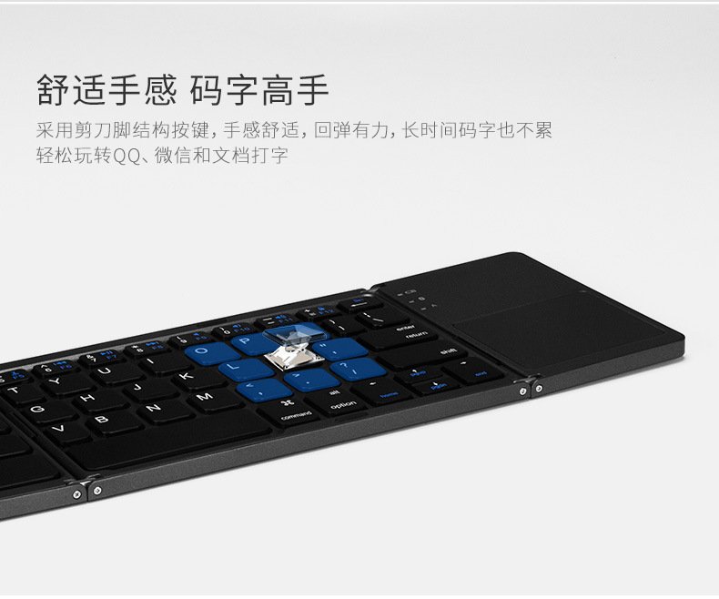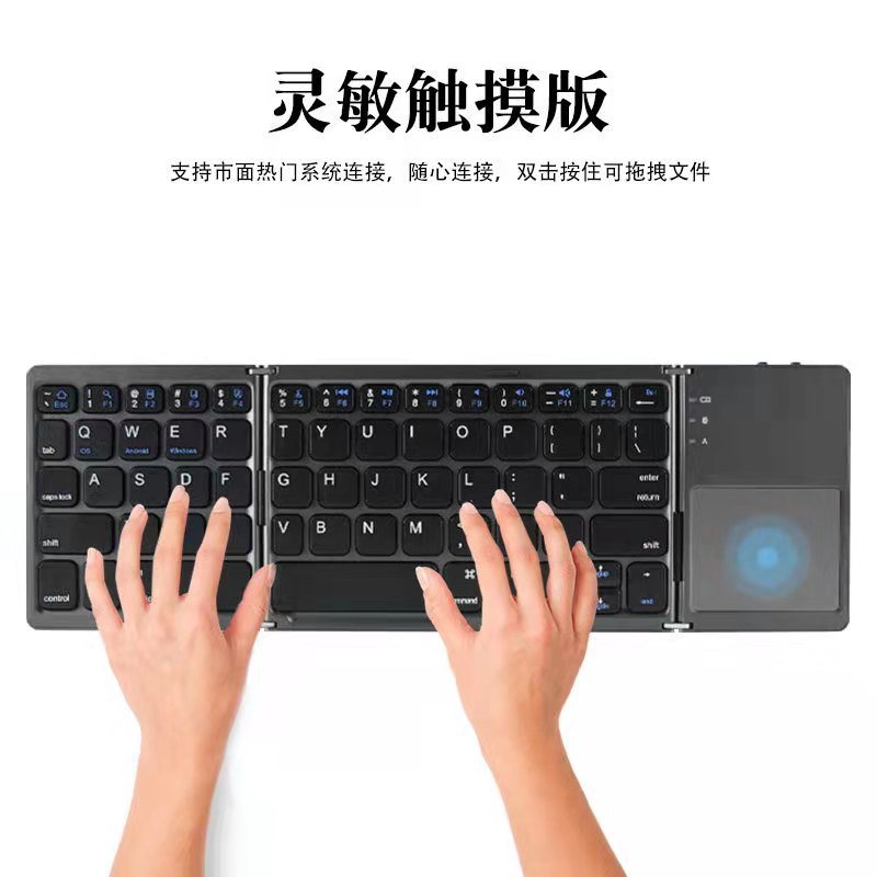 Portable three-folding wireless bluetooth keyboard mobile phone tablet bluetooth keyboard and mouse all in one with trackpad