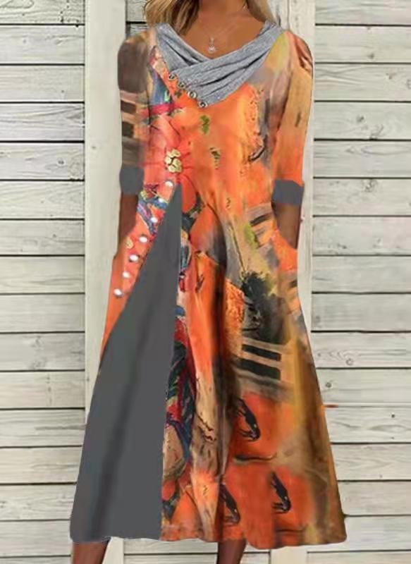 Printed Long Skirt Mid Waist Flat Gray Temperament Commuter Slim Dress