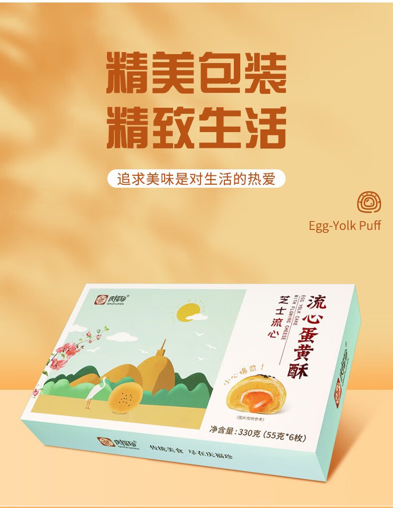Qingfuzhen cheese egg yolk crisp 55g*6pcs/gift box biscuit cake Xue Mei Niang traditional Chinese pastry
