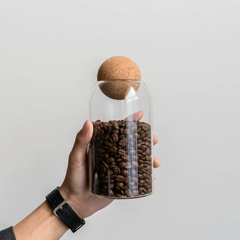 Round heat-resistant glass coffee bean powder sealed jar with cork