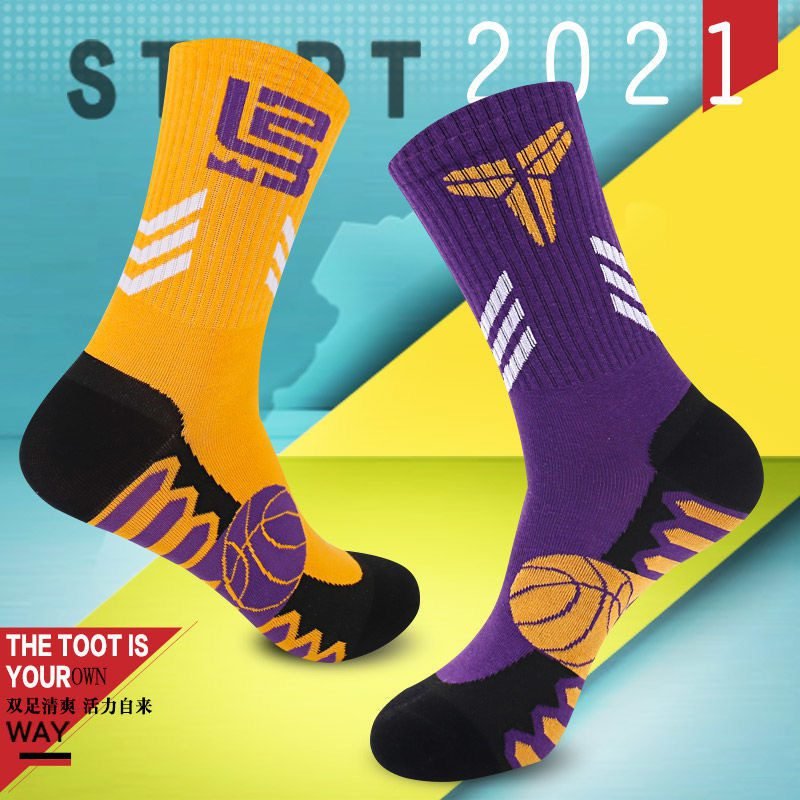 Socks: men’s middle length basketball socks, cotton wear-resistant, sweat-absorbent, breathable, ins, tide brand, four seasons, NBA elite sports children’s socks