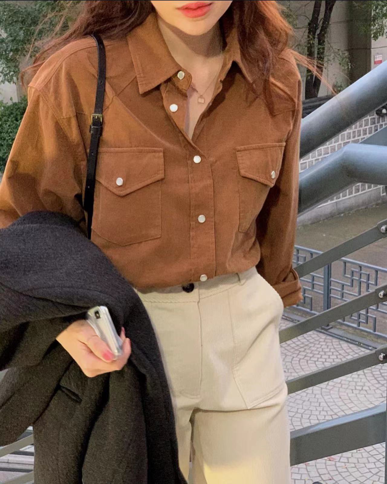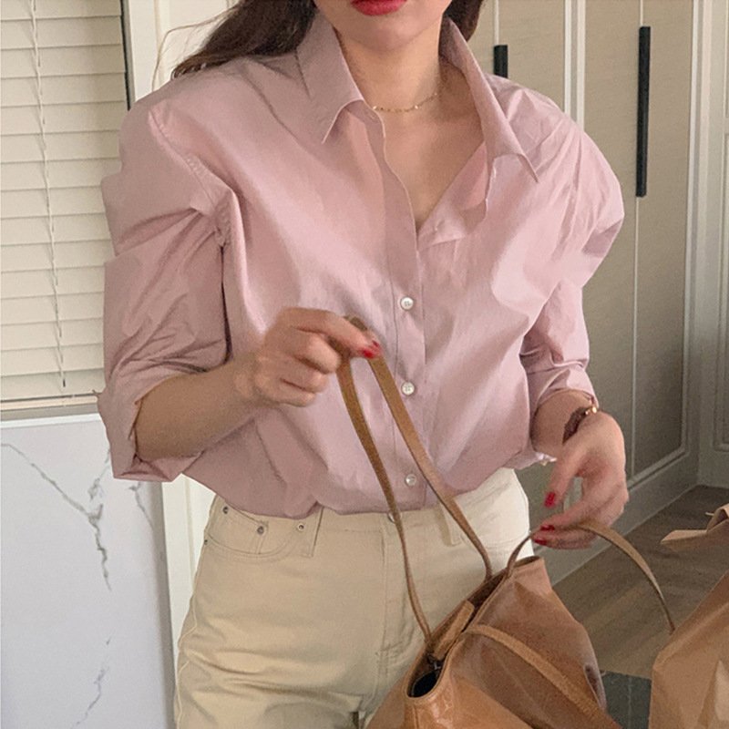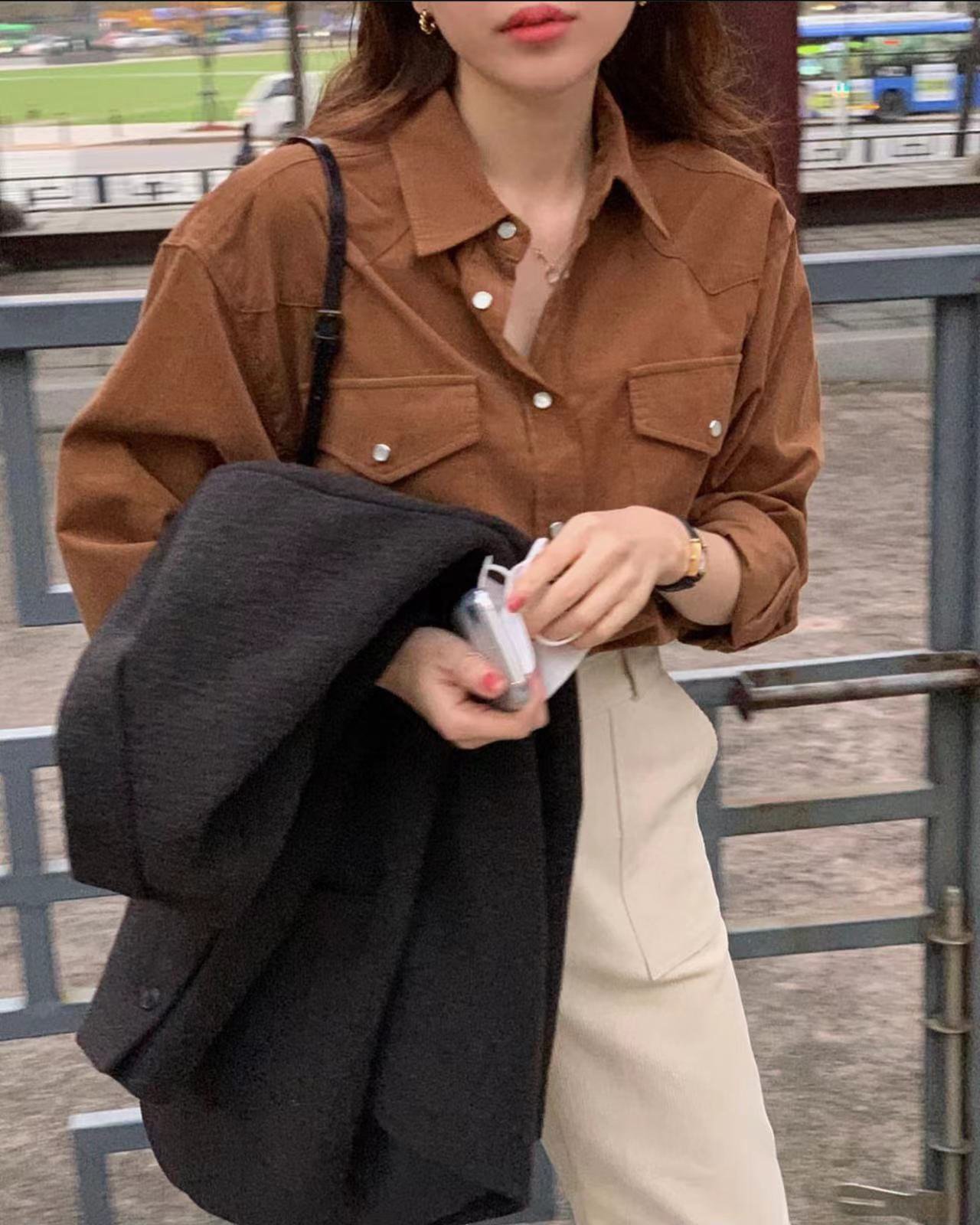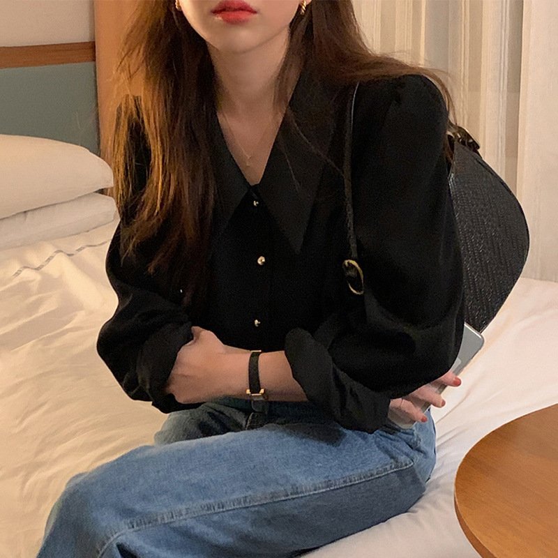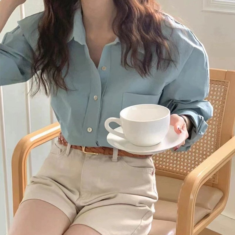 Spot 22 autumn new Korean Dongdaemun retro simple niche all-match retro commuter solid color high-end shirt