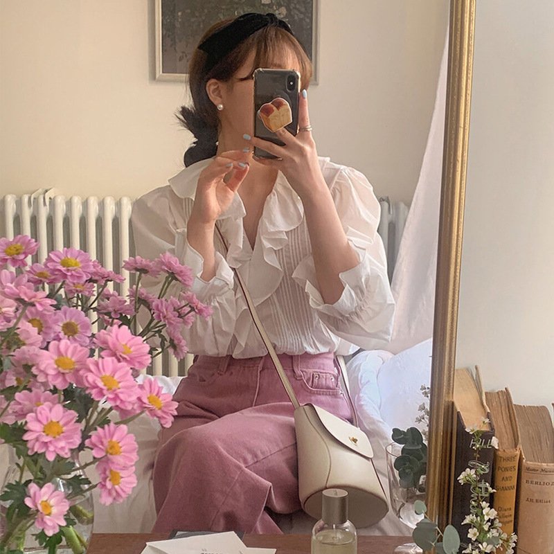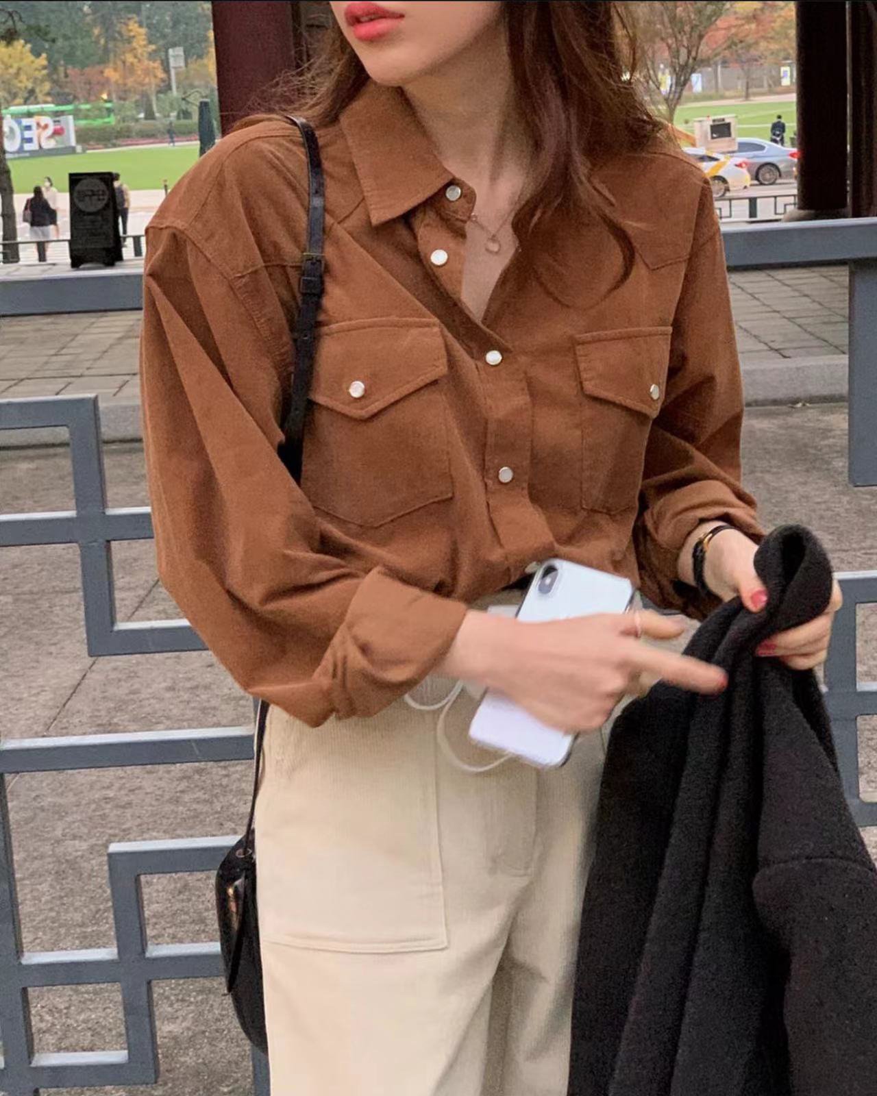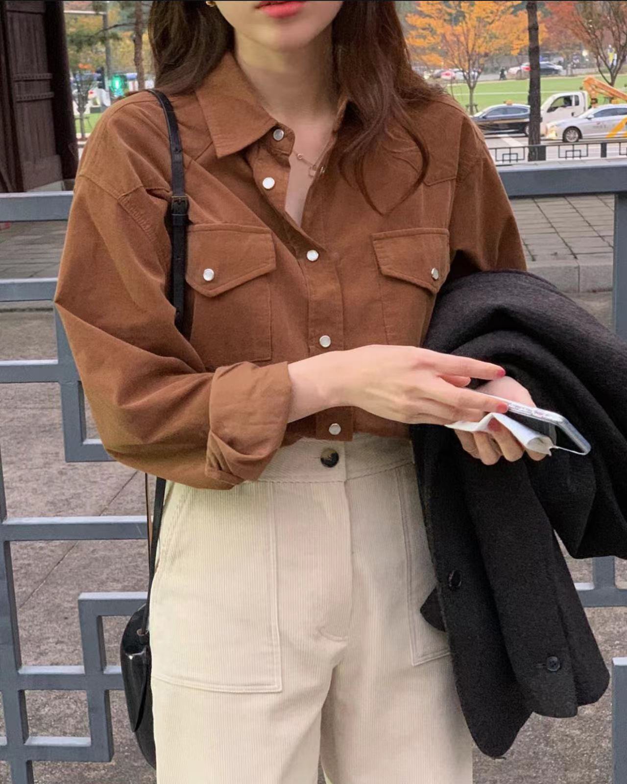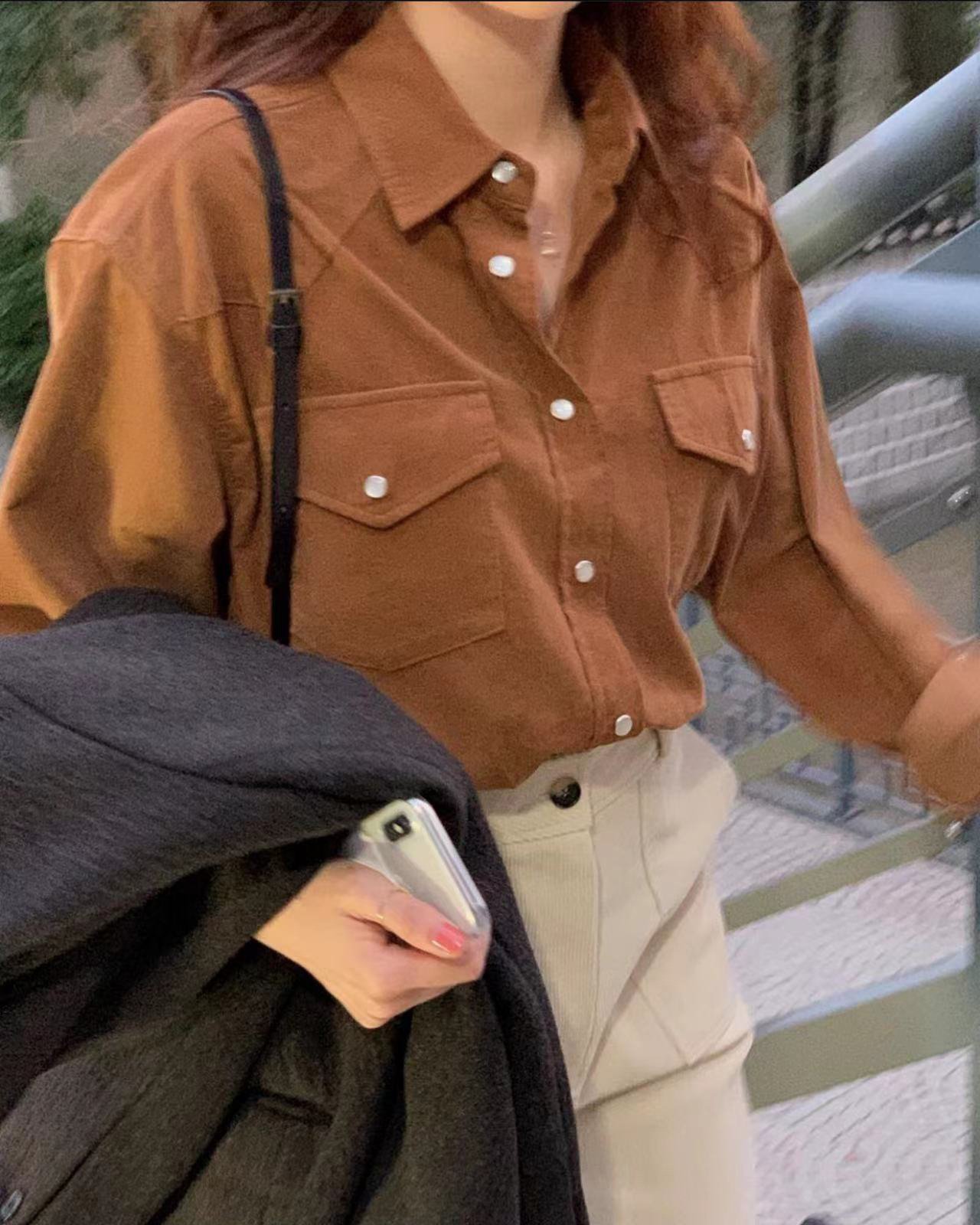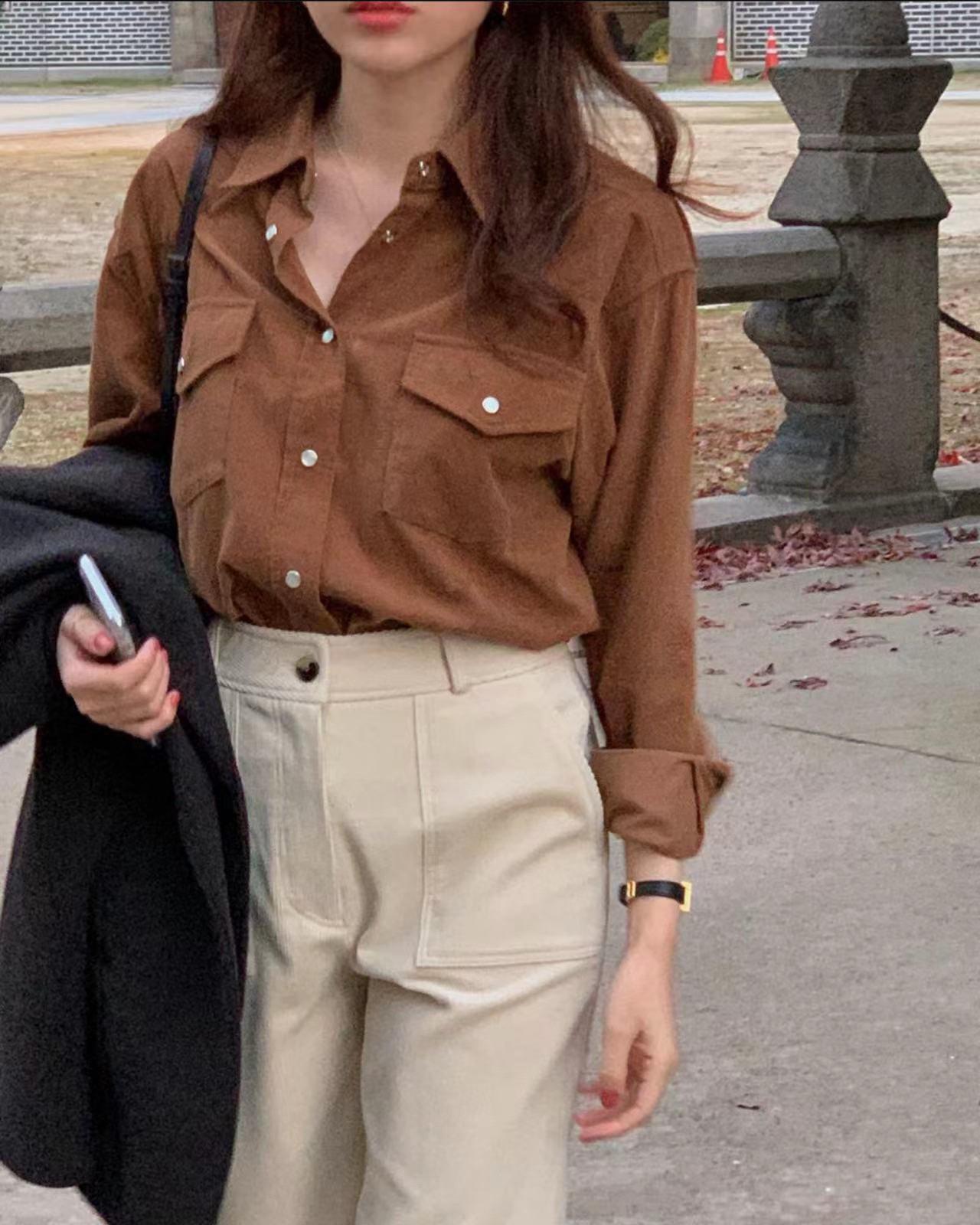 Spot 22 autumn new Korean Dongdaemun retro simple niche all-match retro commuter solid color high-end shirt