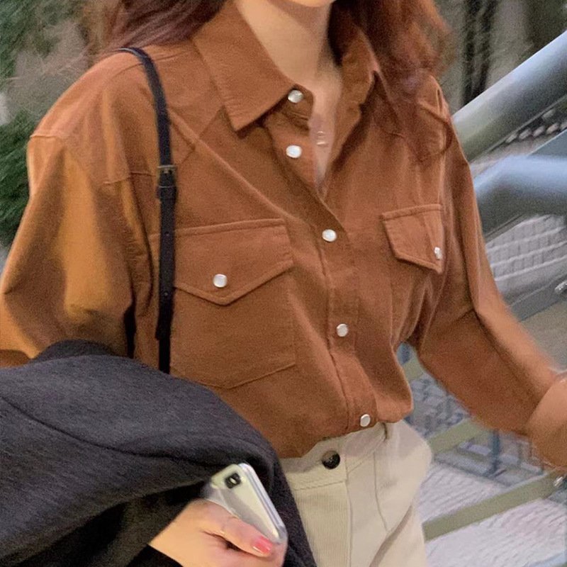 Spot 22 autumn new Korean Dongdaemun retro simple niche all-match retro commuter solid color high-end shirt