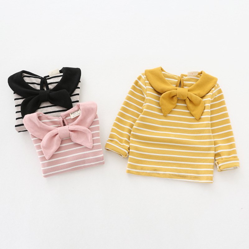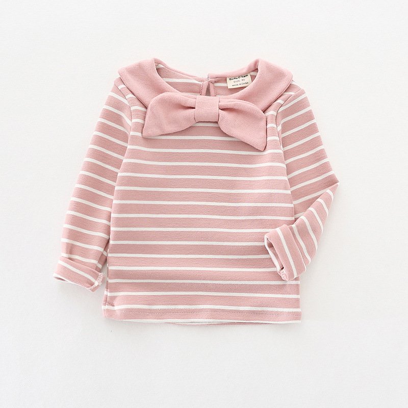 Spring children’s clothing new long-sleeved girls t-shirt cotton striped top girl baby bow bottoming shirt