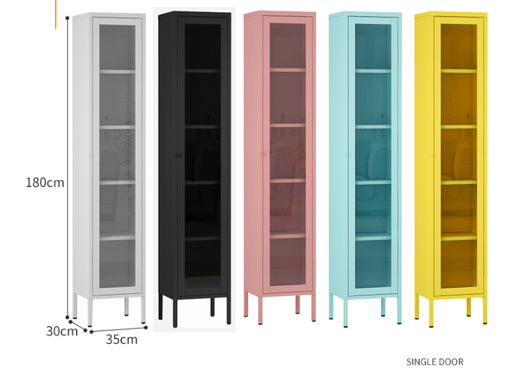 Steel tiger home simple color children’s home with door dust-proof bookcase bookshelf floor-to-ceiling steel single and double door glass cabinet