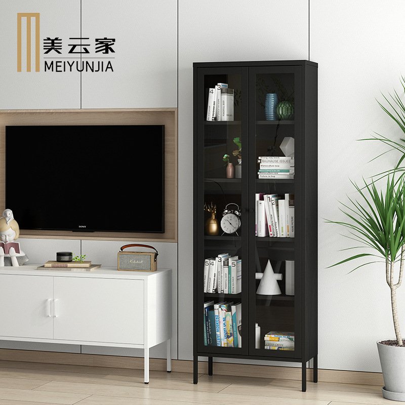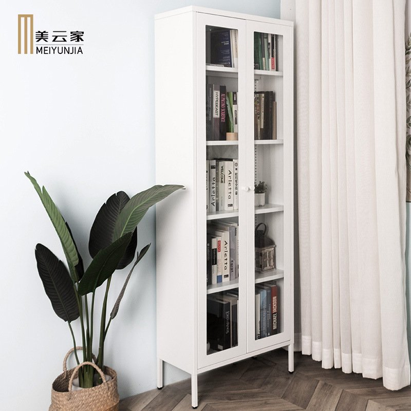 Steel tiger home simple color children’s home with door dust-proof bookcase bookshelf floor-to-ceiling steel single and double door glass cabinet