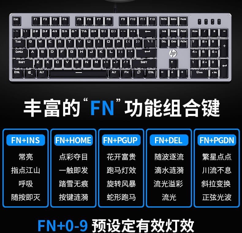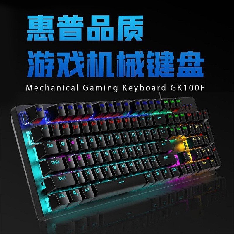 Suitable for HP/HP GK100F Mixed Light Green Axis Mechanical Keyboard USB Interface Suitable for Gaming Internet Café Gaming