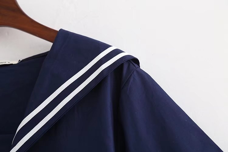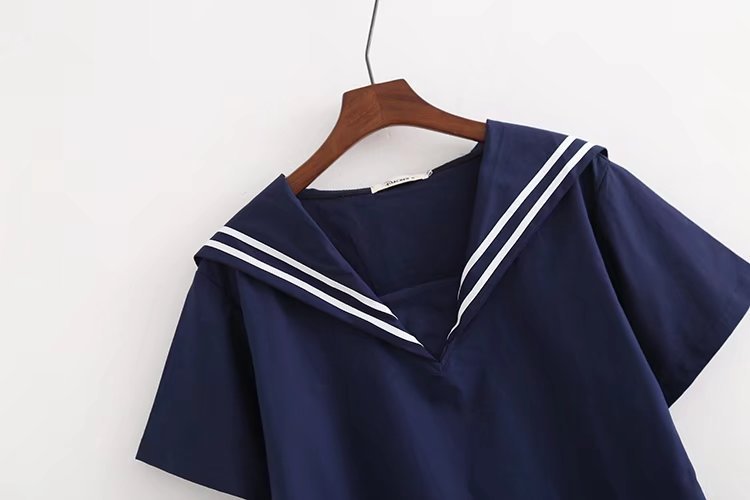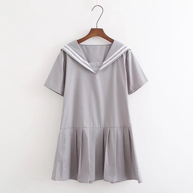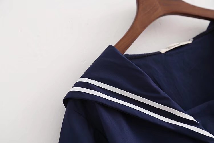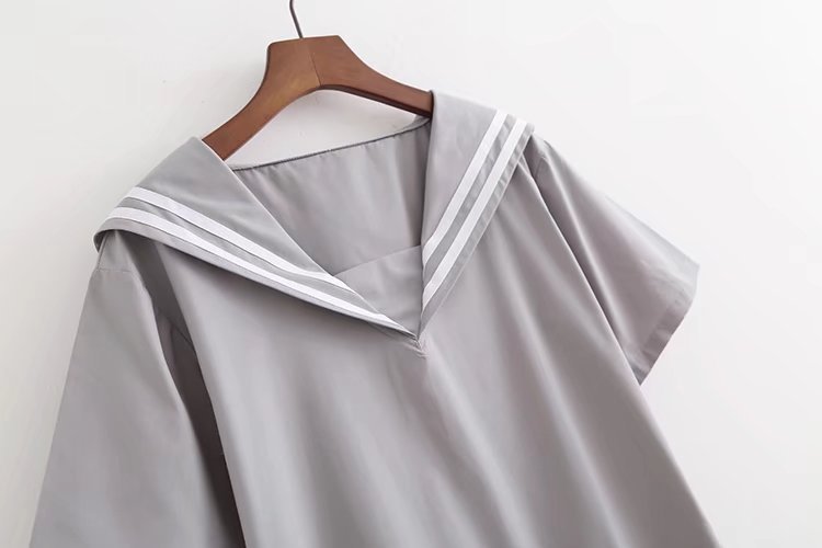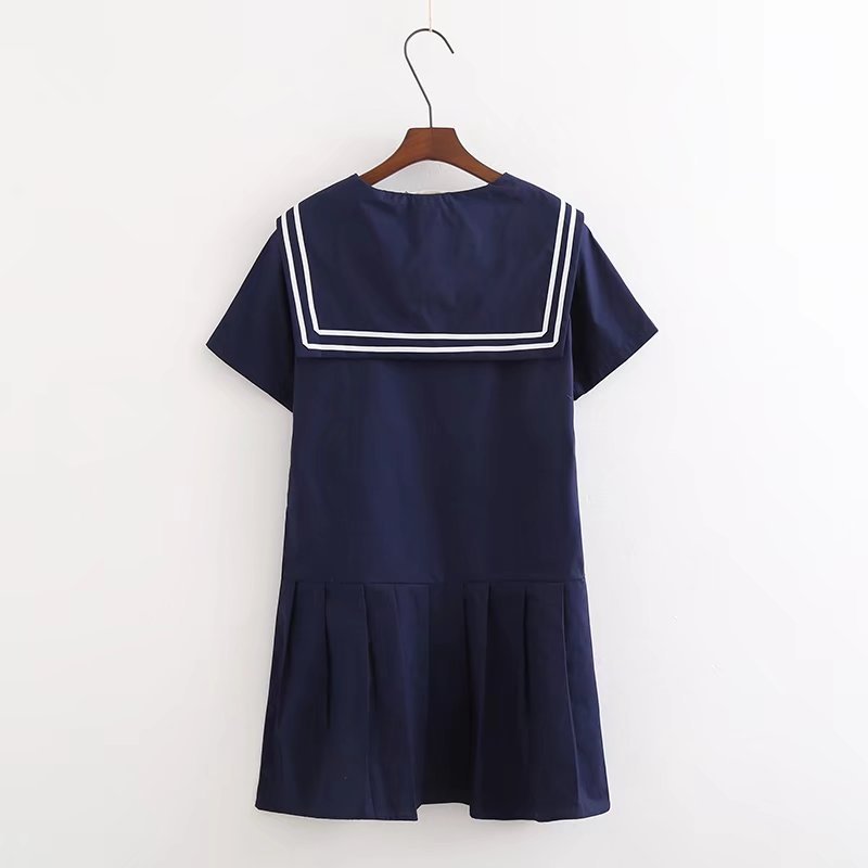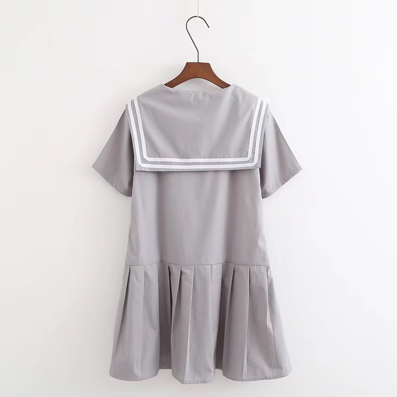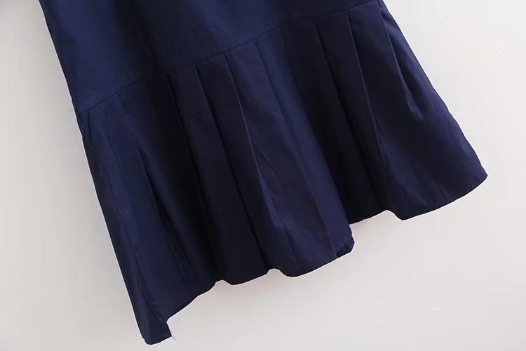 Summer new cotton navy style pleated skirt loose and thin solid color short-sleeved dress C4250