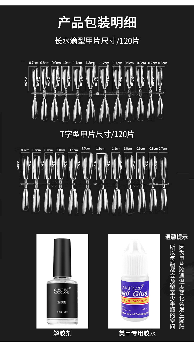 Sweet Color manicure nail patch full paste extended nail fake nail patch transparent nail piece 240 pieces with glue glue