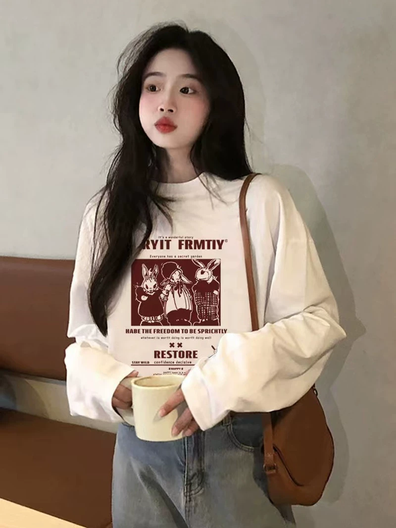 Sweet Japanese cotton long-sleeved t-shirt female design sense niche cartoon autumn upper clothes loose inner bottoming shirt