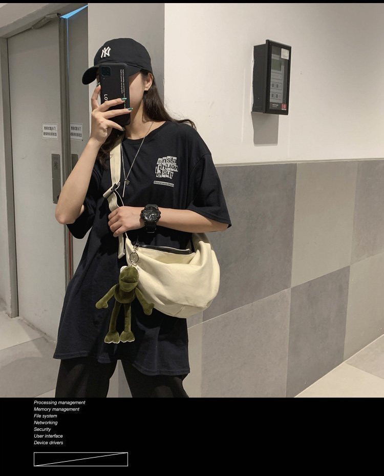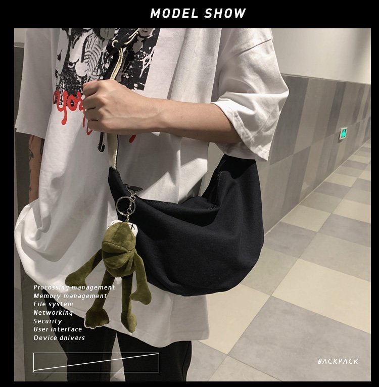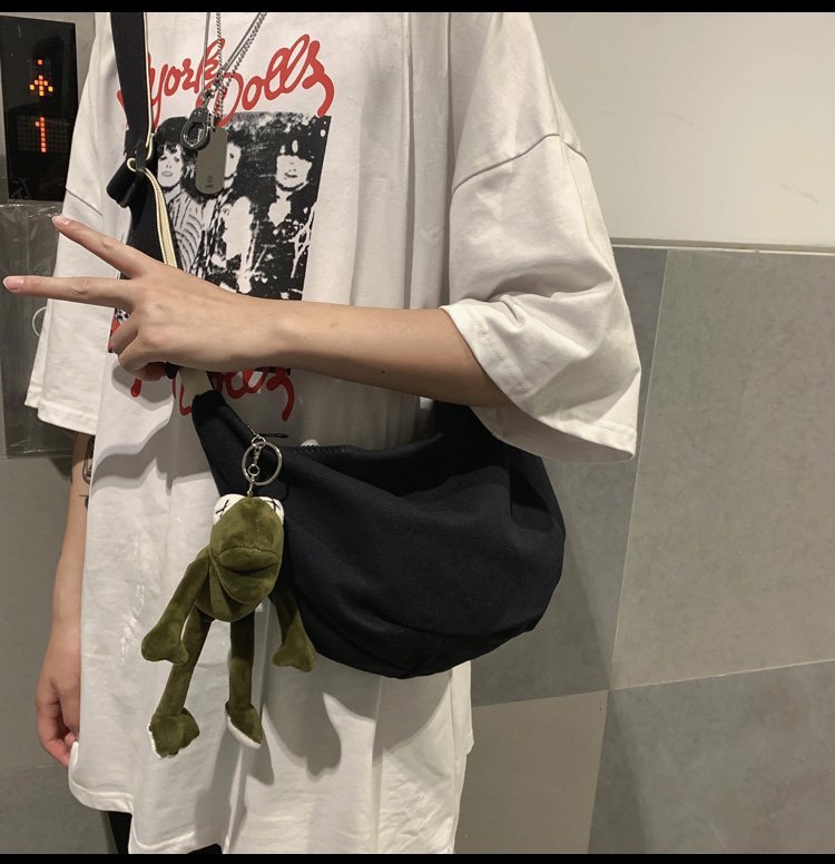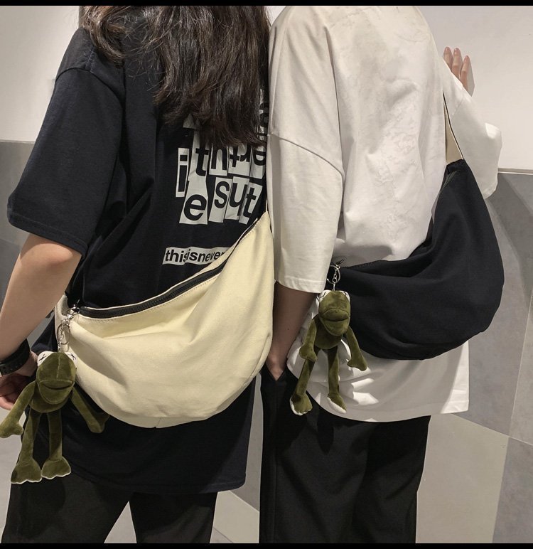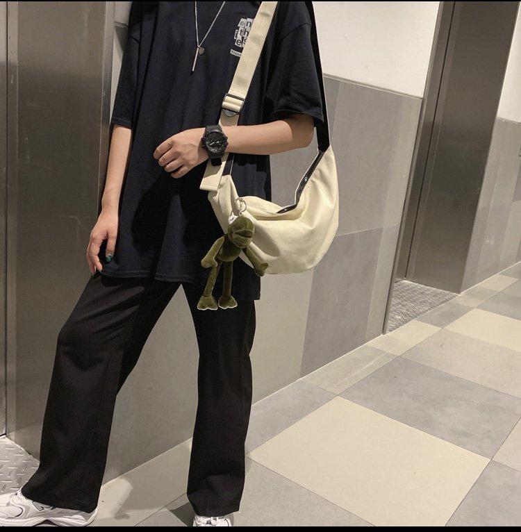 Trend fashion casual commuter ladies shoulder bag simple solid color canvas men’s bag Japanese ins tide brand Messenger bag