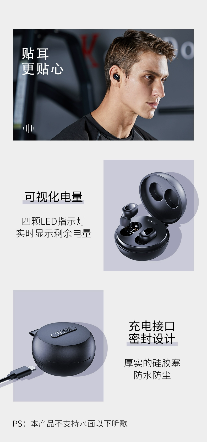 Tribit fun times true wireless bluetooth headset sports IPX8 waterproof can bathe swimming noise reduction bass low latency in-ear long battery life Apple Android Universal 2022 new