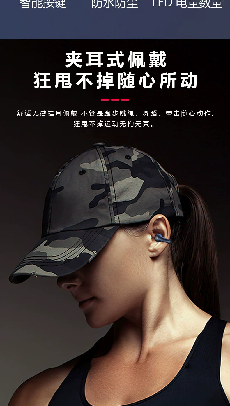 True bone conduction bluetooth headset wireless sports without ear clip hanging ear type ultra-long battery life high-end running dedicated male