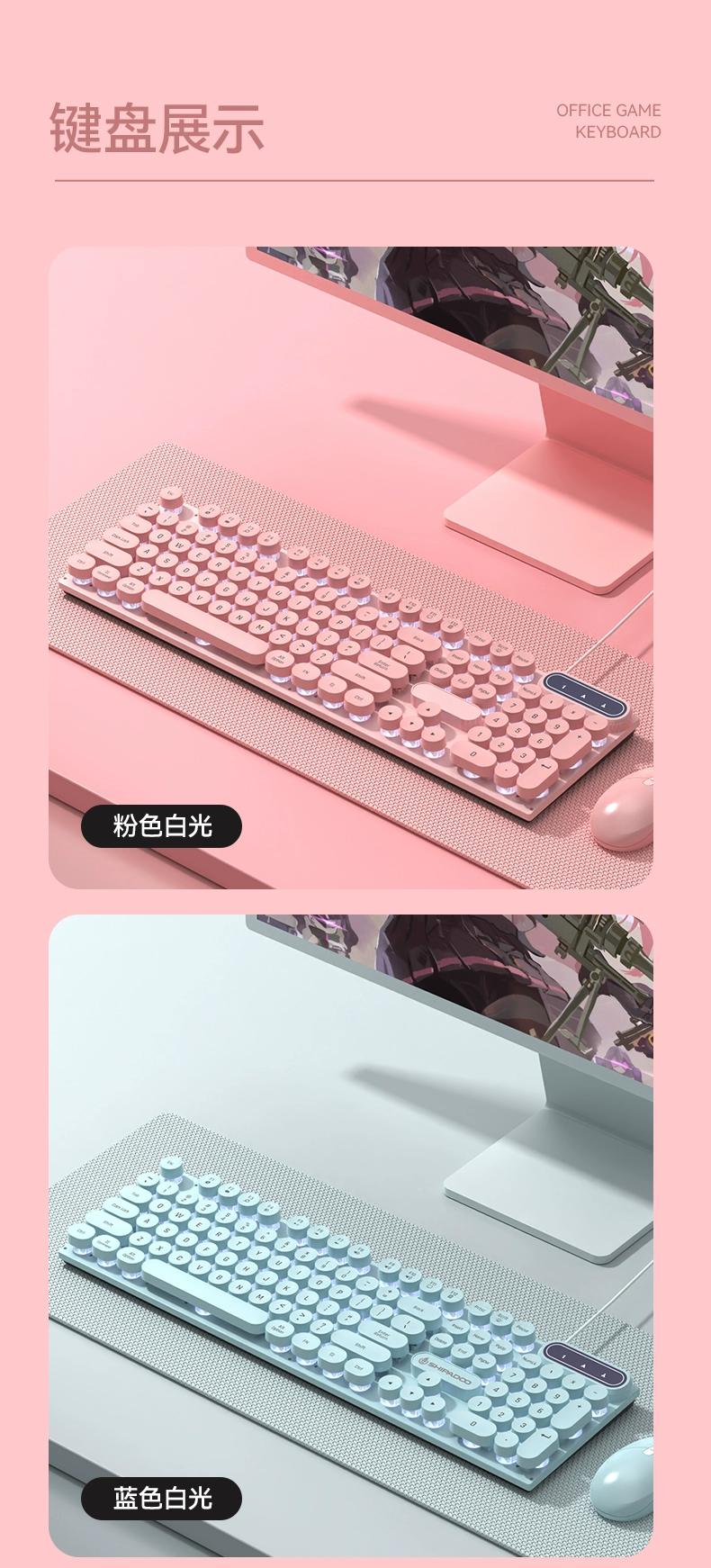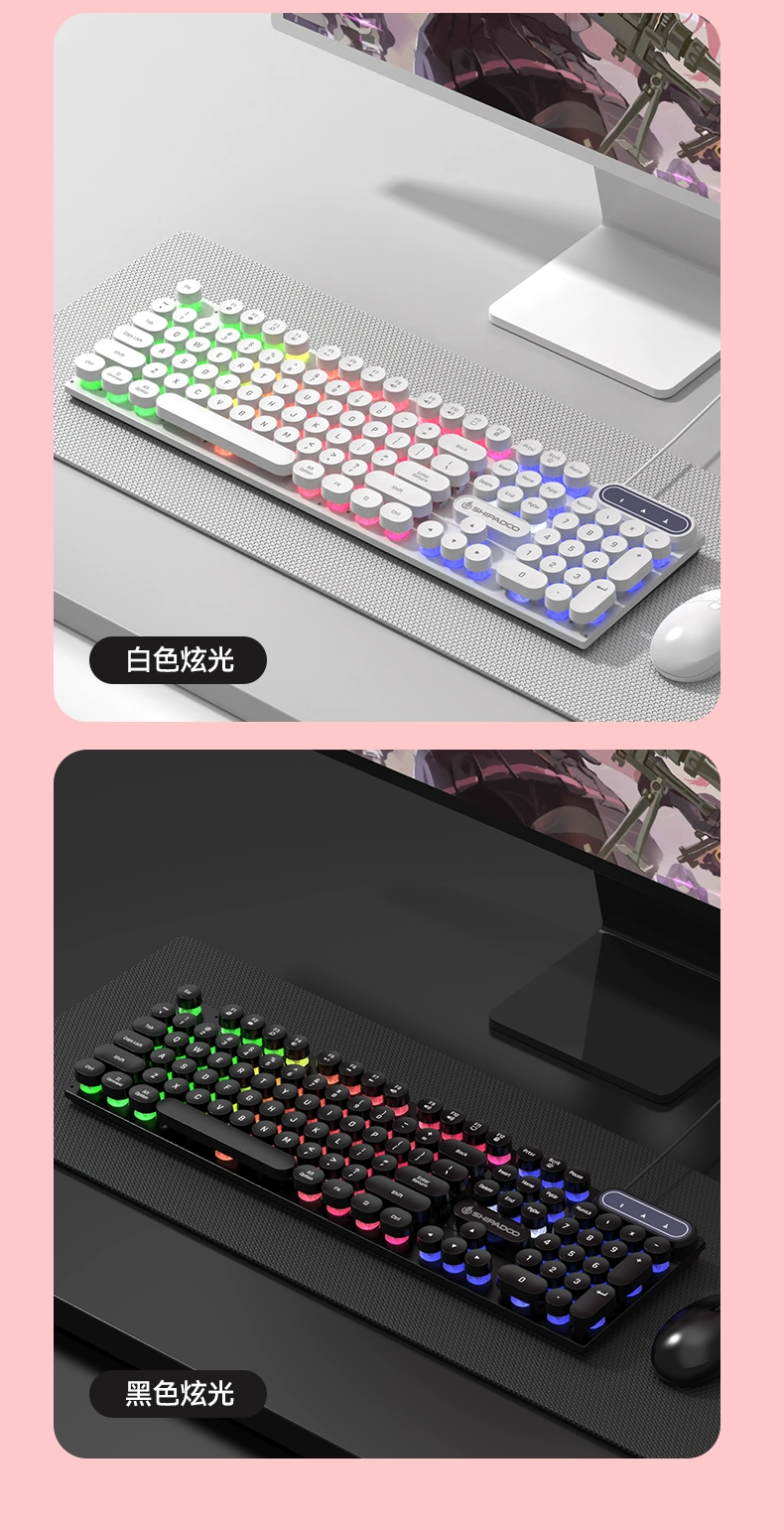 Ultra-thin mute wired keyboard game notebook luminous blue pink girl retro punk office manipulator