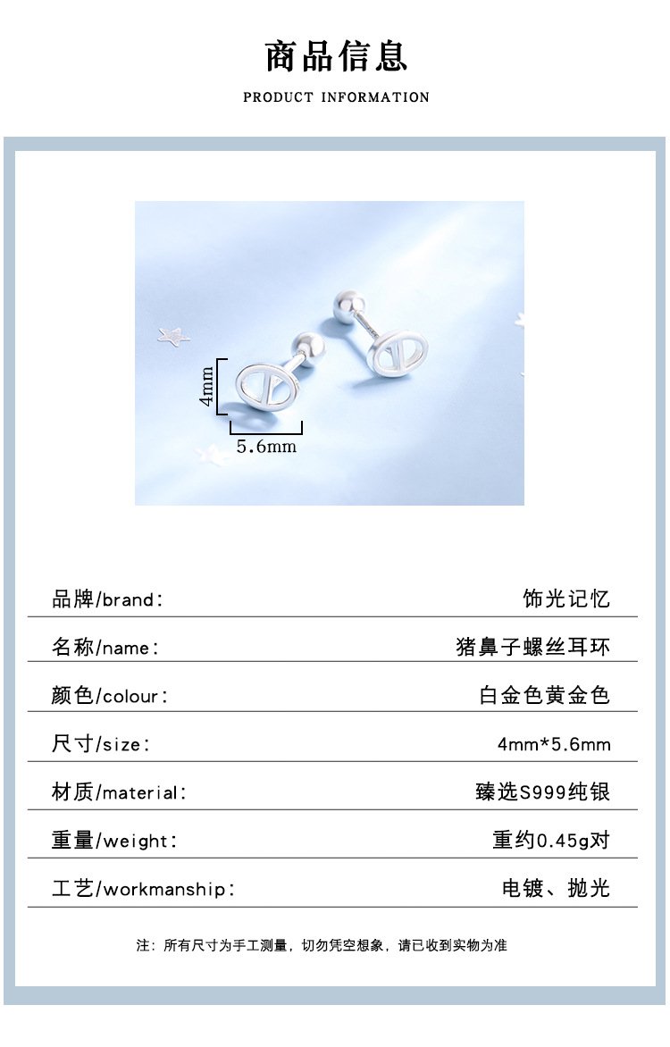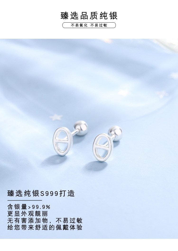 Under the ginkgo tree S999 pure silver pig nose earrings high-end earrings 2023 simple niche design earrings