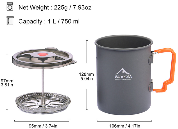 Widesea camping coffee cup aluminum with filter coffee pot portable hiking outdoor cooking utensils