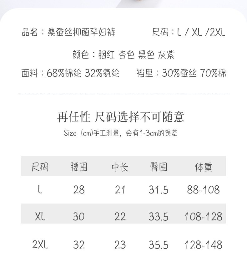 Be the first to review “Women’s Mulberry Silk Pure Cotton Bottom Antibacterial One-Piece Non-marking Low Waist Belly Support Maternity Underwear” Cancel reply