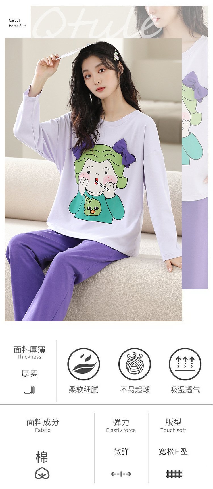 Be the first to review “Women’s pajamas spring and autumn cotton long-sleeved trousers round neck new simple and sweet Korean version can be worn outside home service suit” Cancel reply