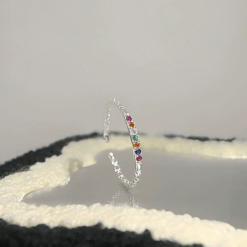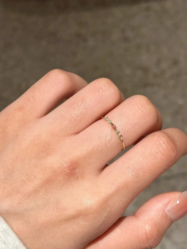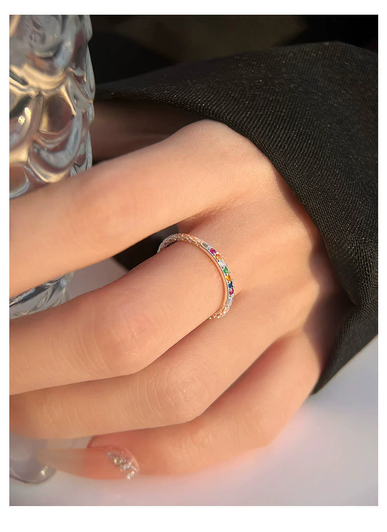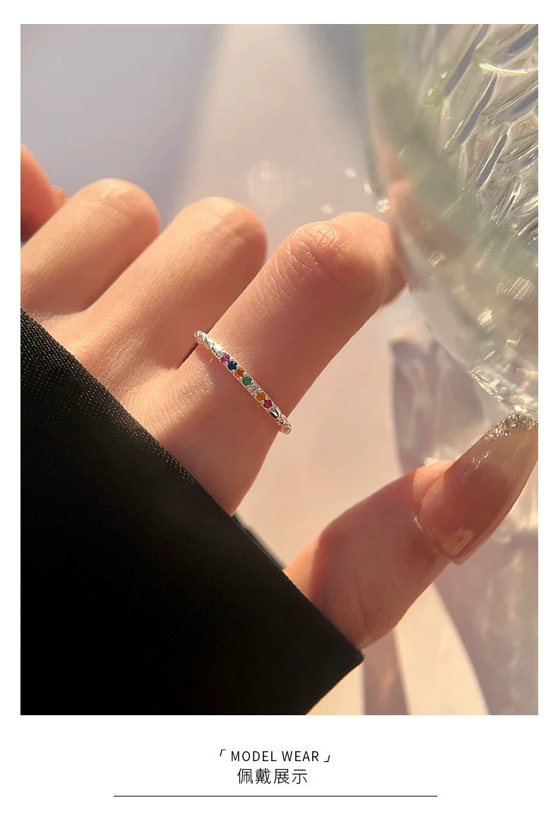 Xiaohongshu’s new best-selling plain ring mini small colored diamond ring with a simple, light and luxurious temperament and cold wind ring trend