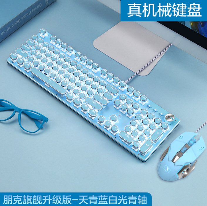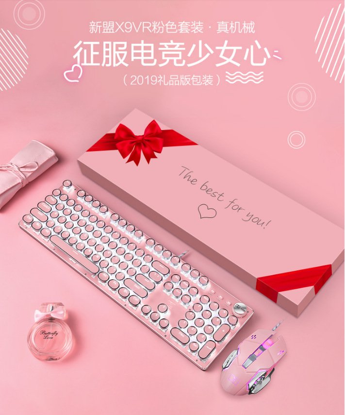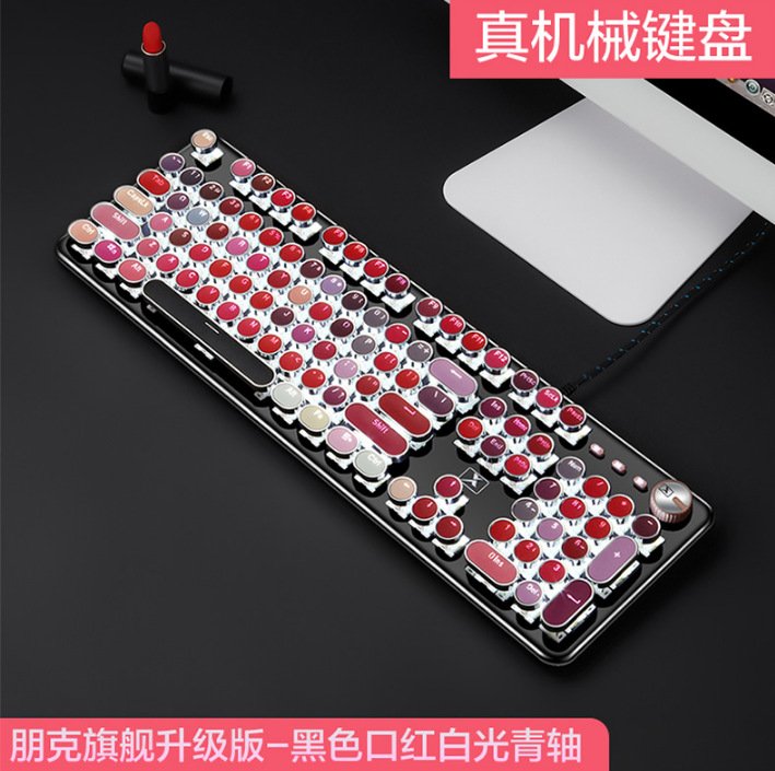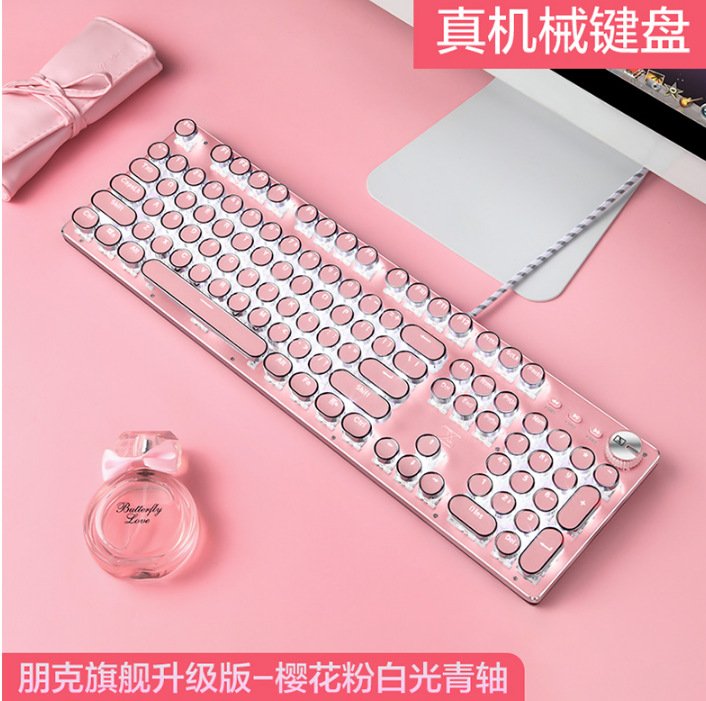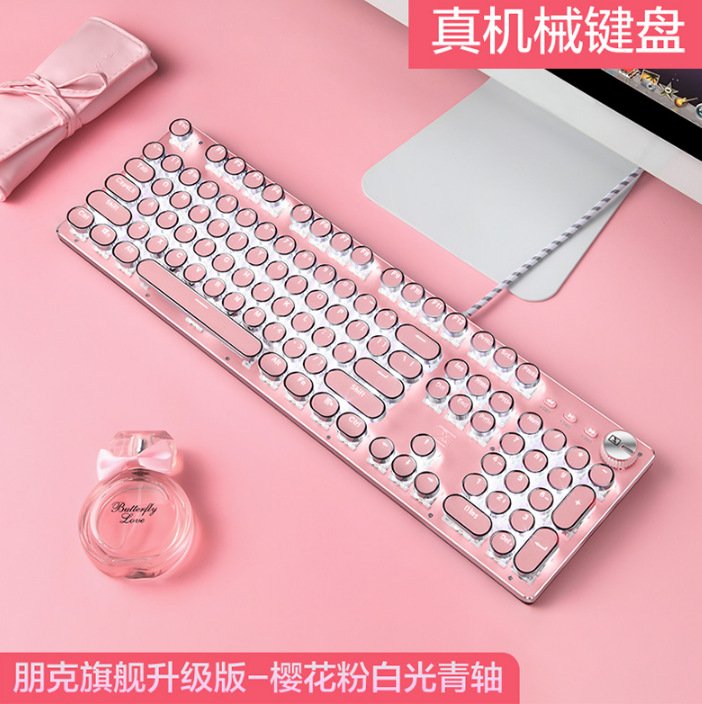 Xinmeng girl pink real mechanical keyboard green axis punk retro round key chocolate office typing game keyboard