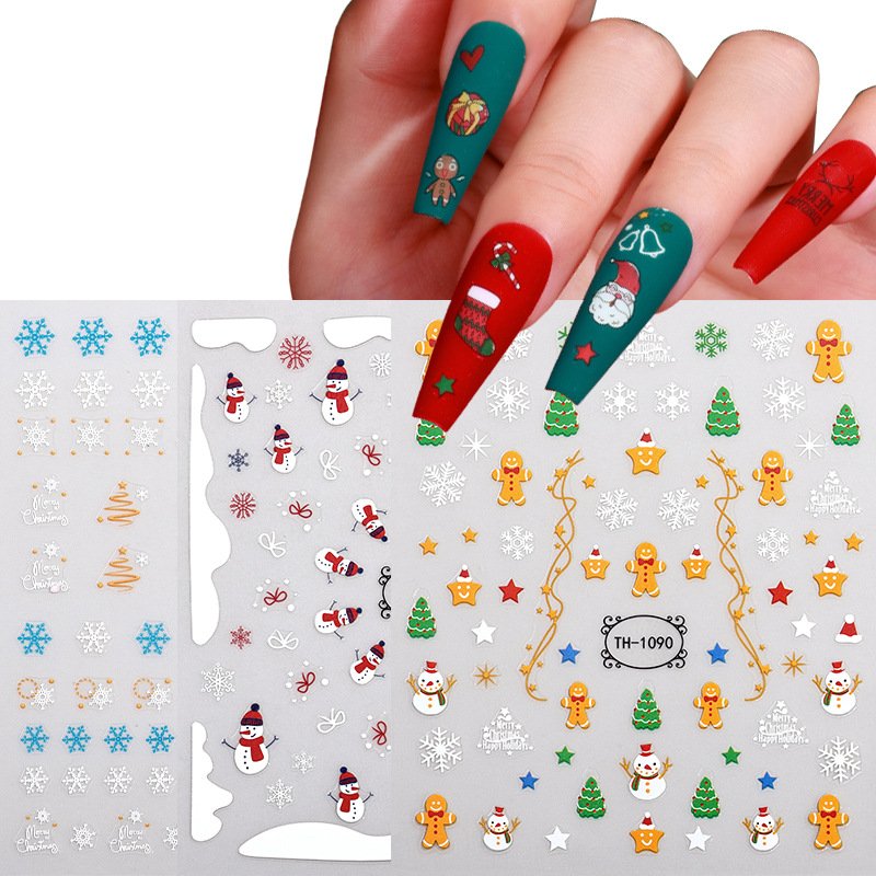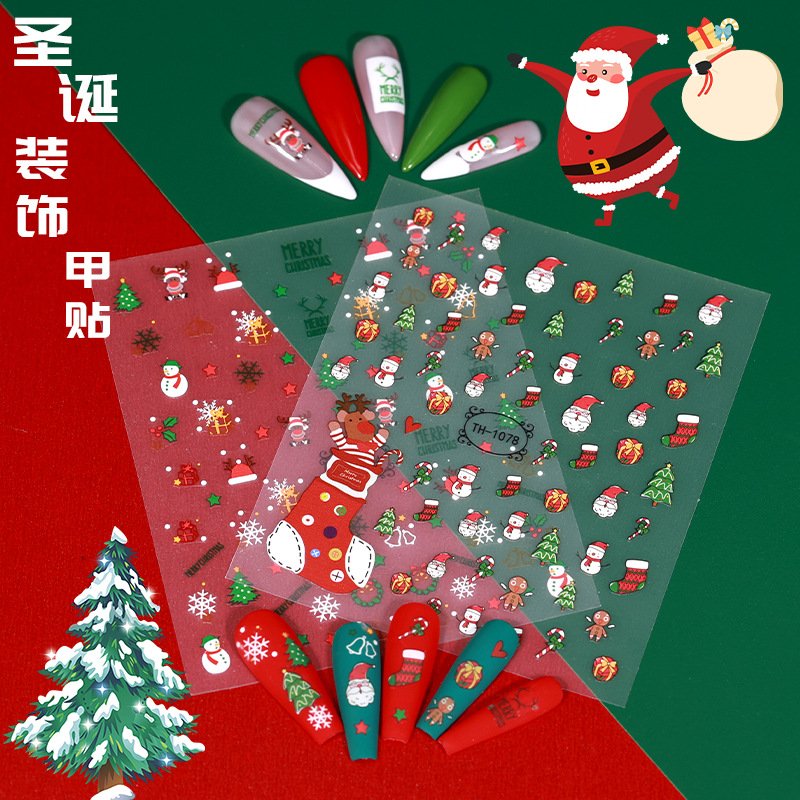 Zhengxiang New Christmas Nail Stickers Wholesale DIY Nail Decals INS Amazon Snowman Snowflake Nail Stickers