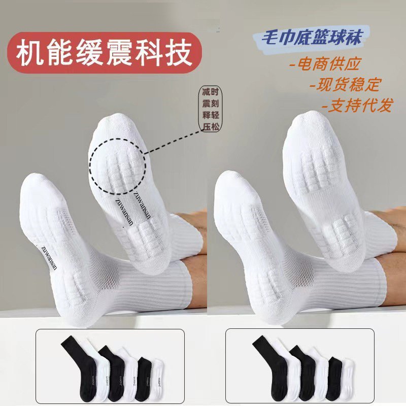 Zhuji socks, men’s sweat-absorbing and odor-proof sports socks, medium socks, cotton socks, towel soles, shock-absorbing autumn and winter basketball socks