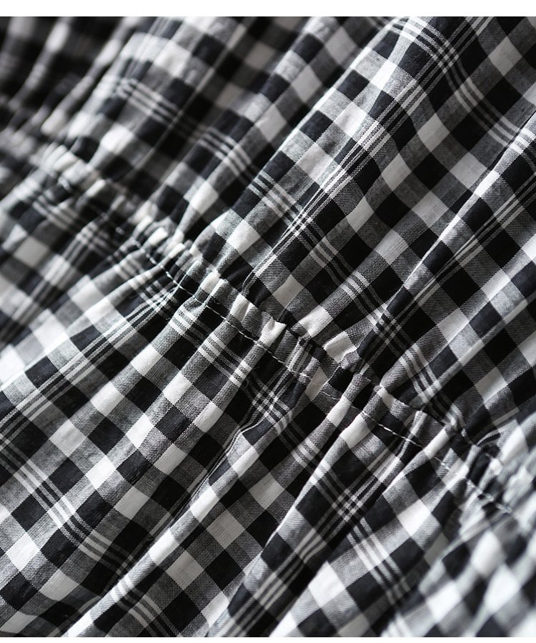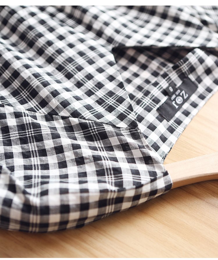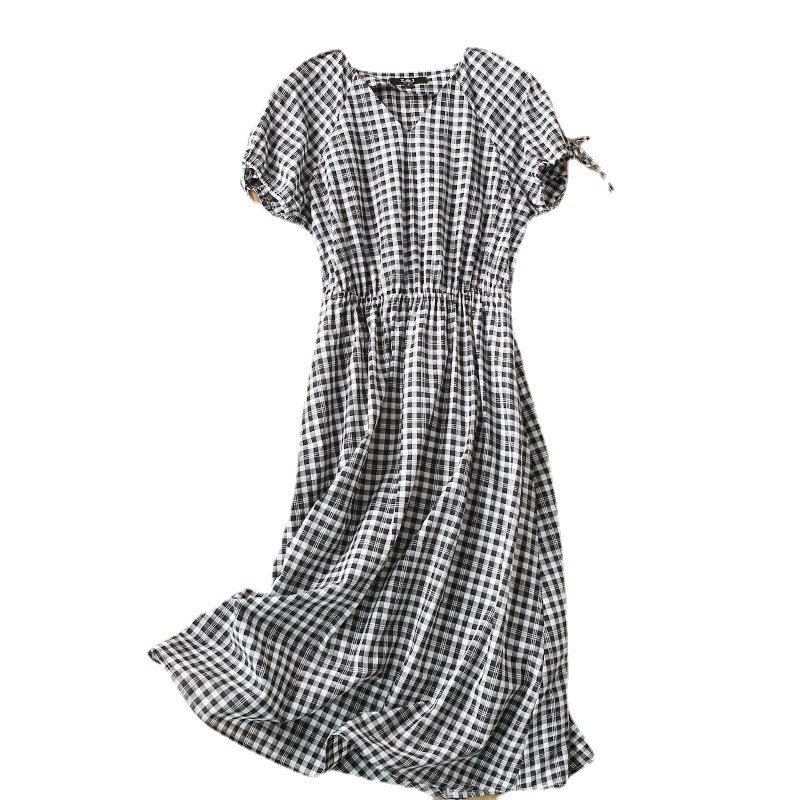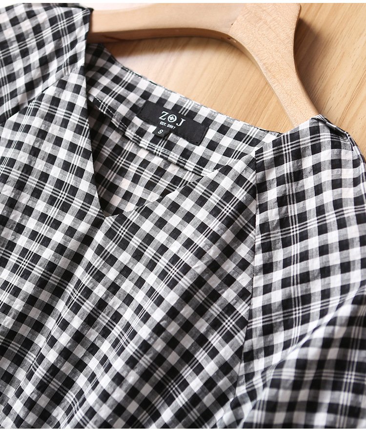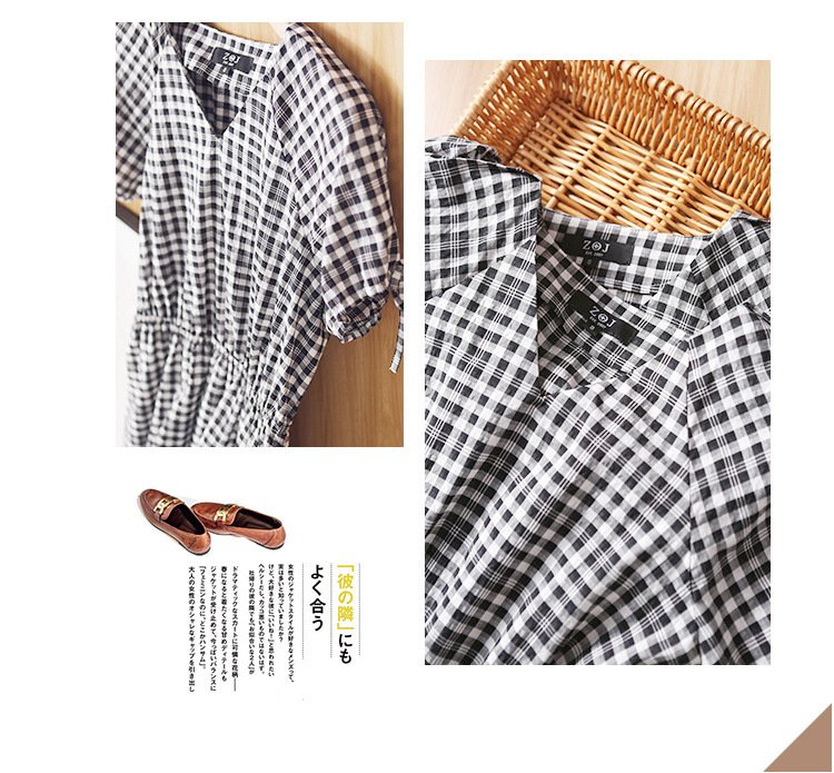 ZOJ Japanese-style cotton dress black and white grid 2022 new spring and summer fashion women’s skirt short sleeves / middle sleeve selection