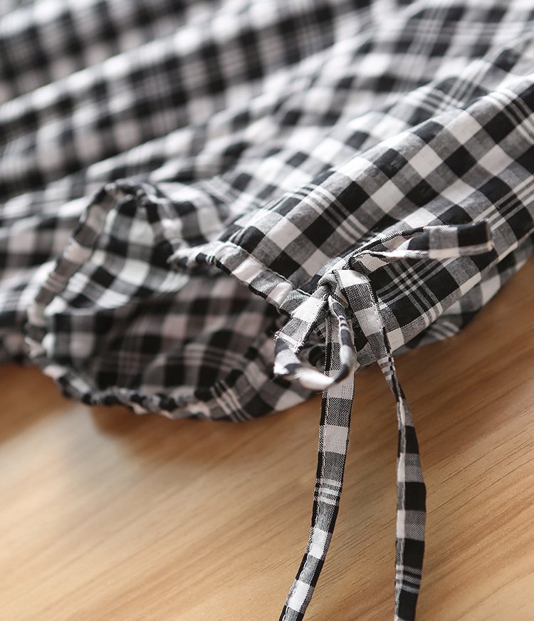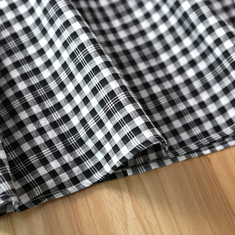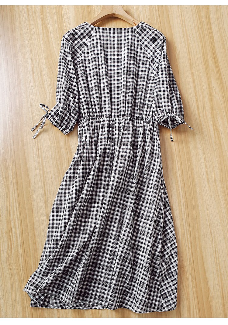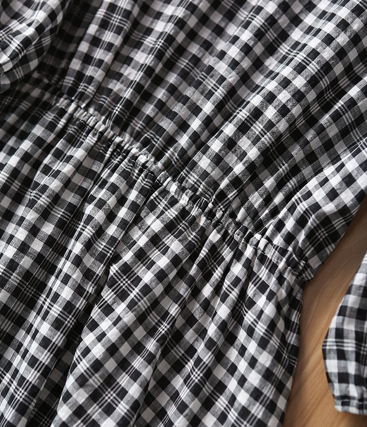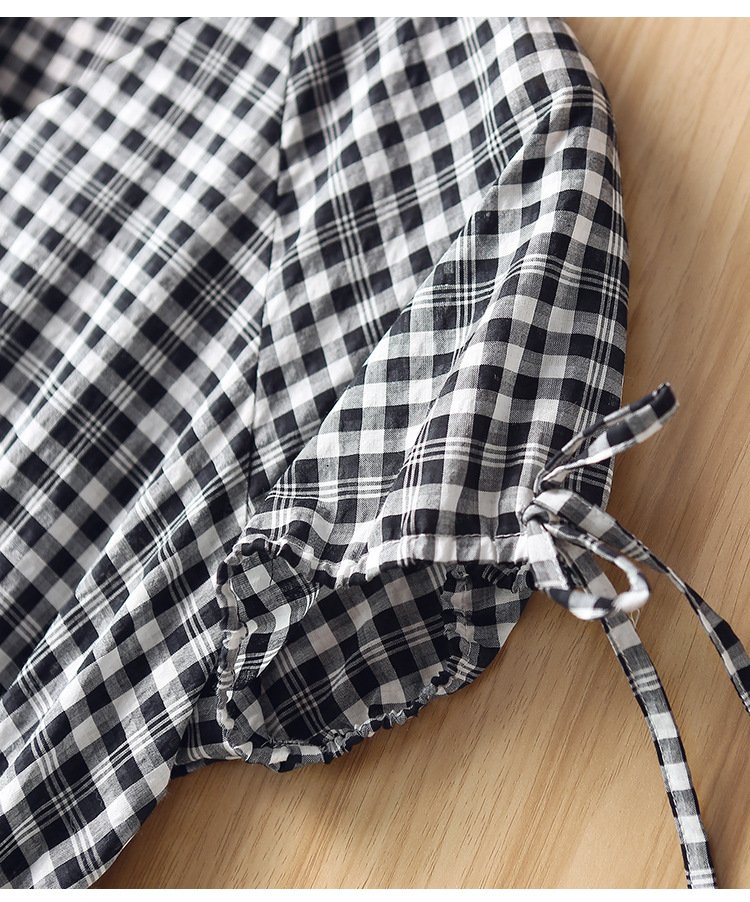 ZOJ Japanese-style cotton dress black and white grid 2022 new spring and summer fashion women’s skirt short sleeves / middle sleeve selection